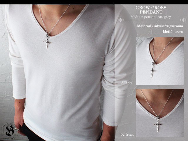 ■商品名:グロウクロスペンダント ネックレス メンズ (2mmアズキチェーン付きセット) シルバー925 アクセサリー シルバーペンダント