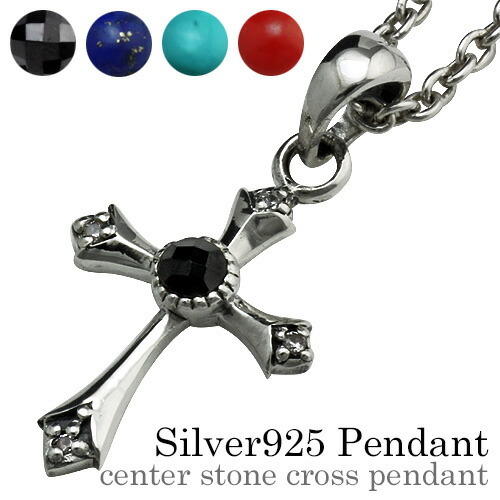 ■商品名:全4種 センターストーンクロスペンダント (ブラックスピネル) (トップのみ) ネックレス メンズ 天然石 シルバー925 アクセサリー シルバーペンダント