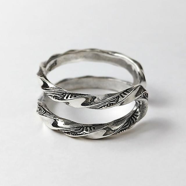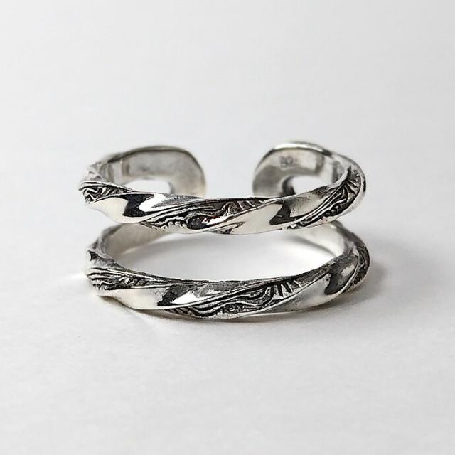 ■商品名:ツイスト ネイティブ パターン ダブル リング メンズ 指輪 レディース シルバー925 アクセサリー 2連風 重ね付け風 レイヤード ねじれ ツイスト ネイティブ系 シルバーリング
