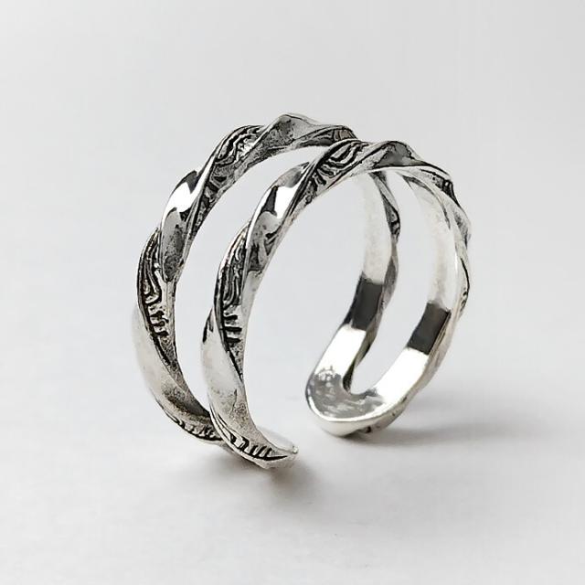 指輪 ツイスト ネイティブアメリカン柄 リング シルバー925 メンズ レディース フリーサイズ 重ね付け風 細め ねじれ 民族風 ヴィンテージ風 アンティーク風 bar-1457