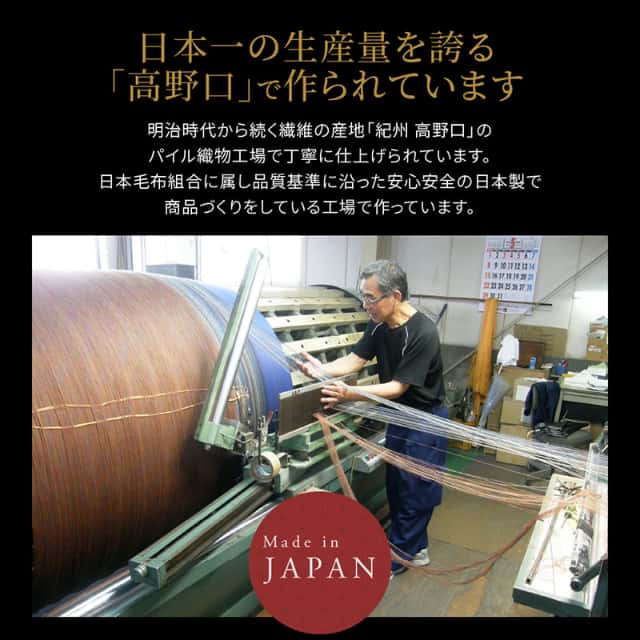 - 「紀州 高野口」のパイル織物工場において、各工程で高度な技術で作っています。