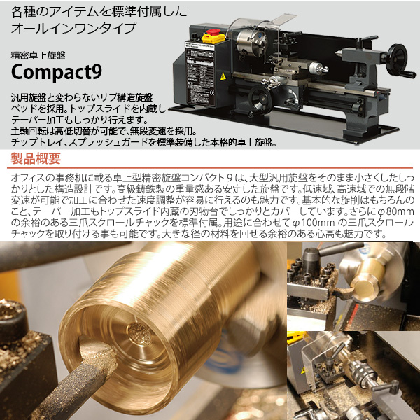 Mr.Meister ミスターマイスター 卓上旋盤 Compact9 スターターセット 60575 精密卓上旋盤 コンパクト9 ドリルチャック 回転センター センタードリル 汎用スロアウェイバイト4本セット 工作機械 代引不可