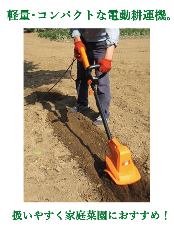 - 軽量&コンパクトタイプの電動耕運機。