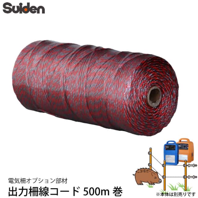 スイデン 電気柵 コード 500m巻き 1033091 出力線コード 電線 ロープ ワイヤー 電柵資材 オプション部品 代引不可 suiden