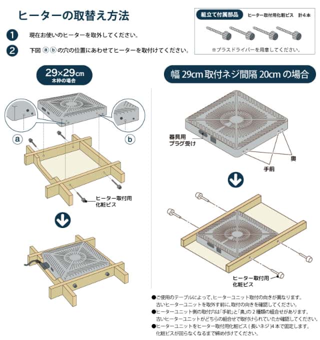 ・ドライバー1本で簡単取替え。古いこたつも快適に。