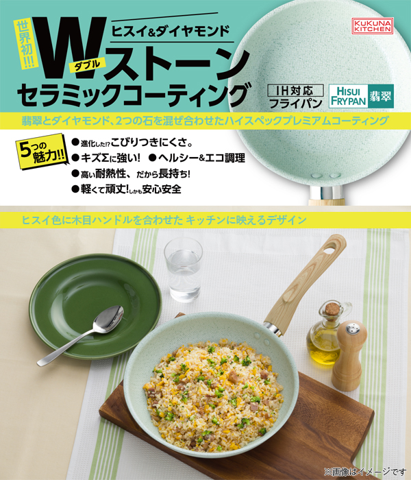 ヒスイ&ダイヤモンドWストーンコーティングフライパンの特徴