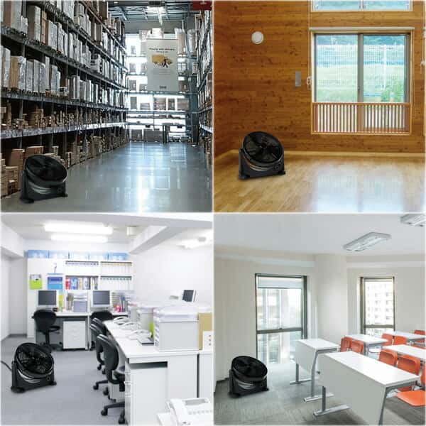 - 店舗、事務所、倉庫などの広い空間の空気の循環に最適。