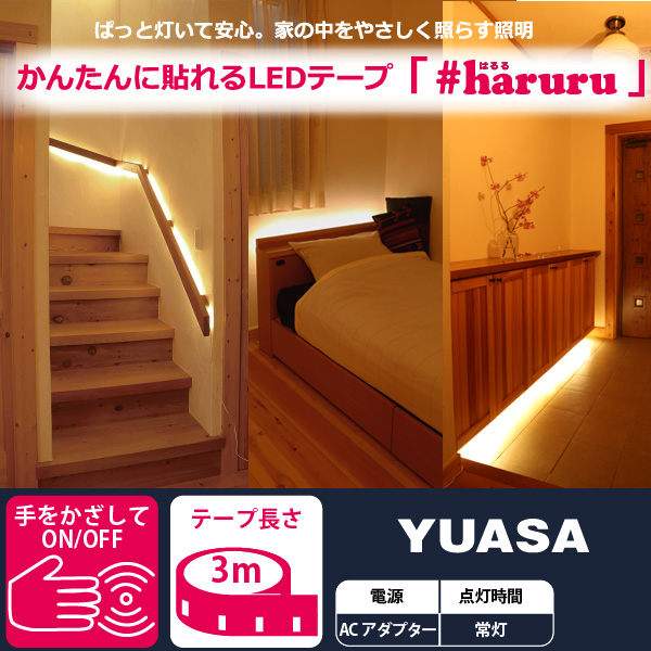 ユアサプライムス LEDテープライト 3m YHL-300YS #haruru #はるる SMD2835 非接触スイッチ搭載 調光機能 正面発光間接照明 イルミネーションにおすすめ YUASA