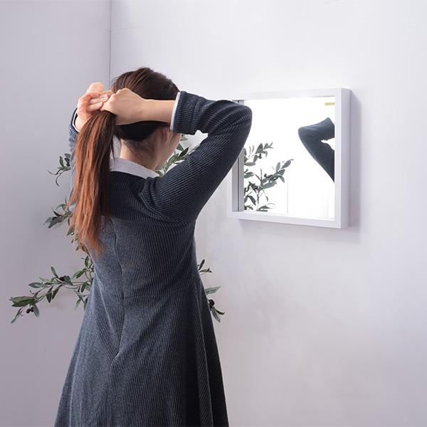 ウォールミラー 小物が収納できる 壁掛けミラー 姿見 鏡 ホワイト