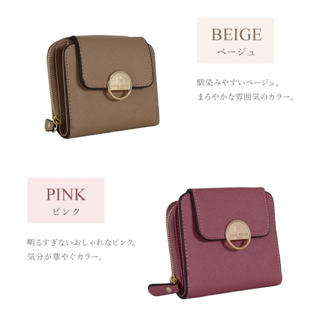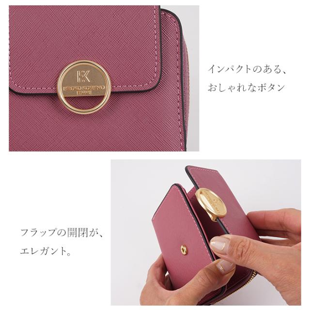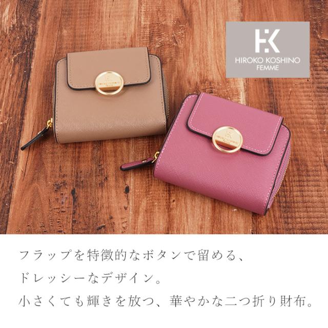 HIROKO KOSHINO ヒロココシノ 財布 二つ折り レディース ミニ財布 ラウンドファスナー ロゴボタン付き 無地 おしゃれ 上品 大容量 大人 プレゼント ギフト