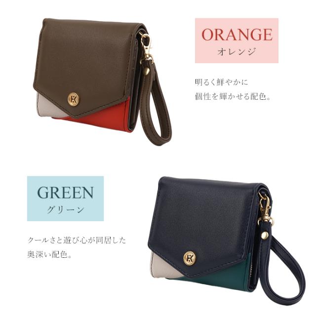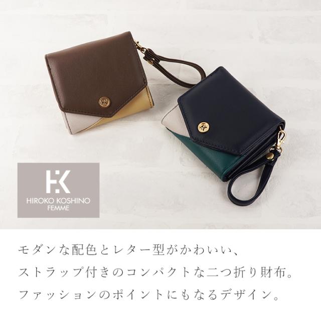 HIROKO KOSHINO ヒロココシノ 二つ折り財布 レディース 財布 ミニ財布 コンパクト財布 ストラップ付き レター型 フラップ財布 おしゃれ 大人 プレゼント ギフト