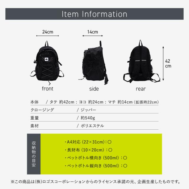 大きすぎず、小さすぎないサイズ感で、毎日使える、 たのもしい、ロゴスパークのデイパックです。