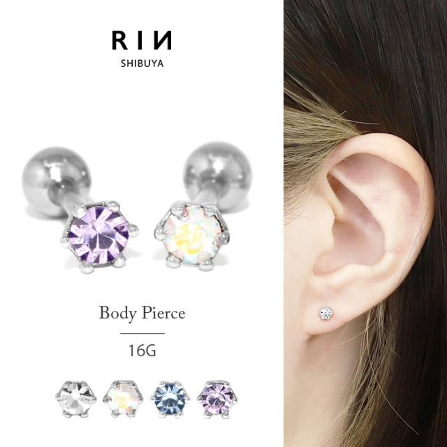 ボディピアス 軟骨ピアス 16G 金属アレルギー対応 サージカルステンレス ストレートバーベル シンプル レディース ジュエル キラキラ セカンドピアス 片耳用