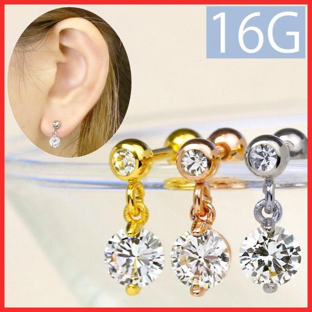 ボディピアス 16G 軟骨 ピアス 片耳用 ジュエル 立爪 ストレートバーベル チャーム付き 揺れる 金属 アレルギー サージカルステンレス 凛