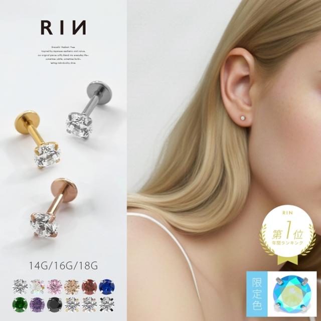 ボディピアス 14G 16G 18G 軟骨ピアス 軟骨 金属アレルギー 対応 つけっぱなし ピアス サージカルステンレス トラガス ヘリックス アウターコンク インナーコンク ラブレット ブラック ゴールド ピンクゴールド 立爪 ジュエル レディース 凛 片耳用