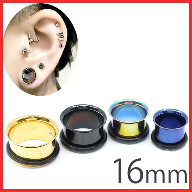 ボディピアス 16mm ピアス シングルフレア アイレット 4色 プラグ ホール ゴールド ブルー ブラック レインボー トンネル ラージゲージ 凛 RIN