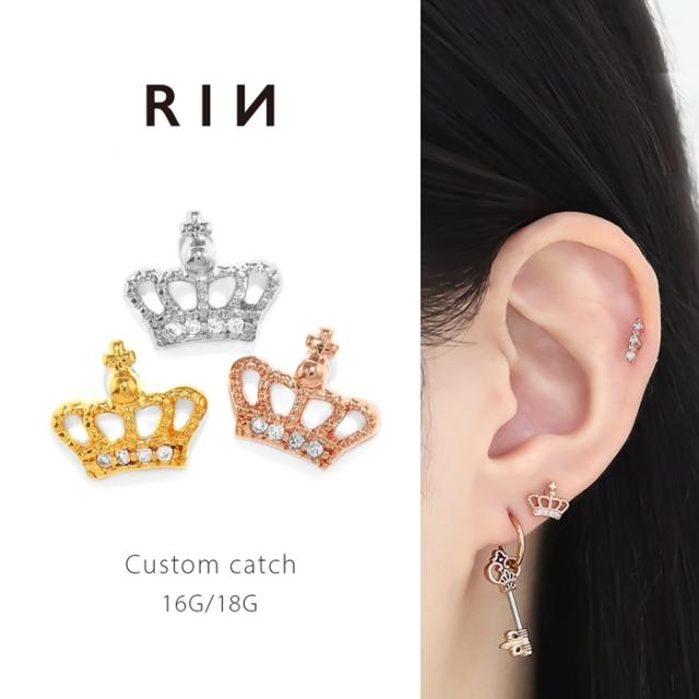 ボディピアス キャッチ 16G 18G クラウン 王冠 ジュエル ジルコニア かわいい おしゃれ アレンジ パーツ カスタマイズ ピアス ピアス 金属アレルギー 人気 大人 女性 レディース アクセ プレゼント ギフト 片耳用
