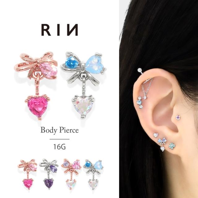軟骨ピアス ボディピアス ハート チャーム付き リボン 揺れる ゆらゆら ゆめかわ ジュエル キュービックジルコニア ストレートバーベル 16G ボディーピアス 軟骨 ピアス 16ゲージ 耳 耳たぶ 軟骨用 なんこつ ピアス 片耳用 レディース アクセサリー おすすめ ポイント消化 body piercing 凛 ボディピアス専門店 りん RIN 軟骨チャーム付0237