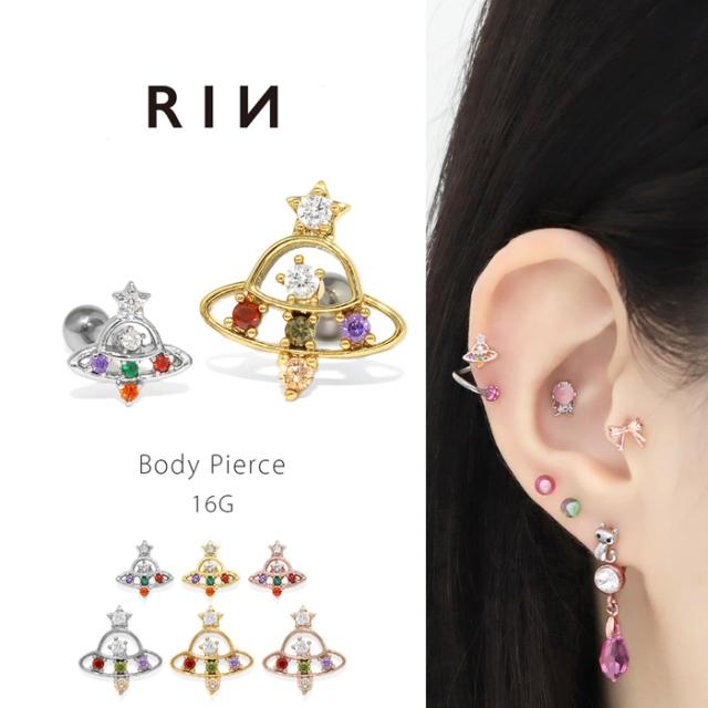 ボディピアス 軟骨ピアス 16G 宇宙 UFO 円盤 ジュエル キュービックジルコニア シルバー ストレートバーベル ピアス 金属アレルギー 人気 大人 メンズ レディース アクセ プレゼント ギフト 片耳用