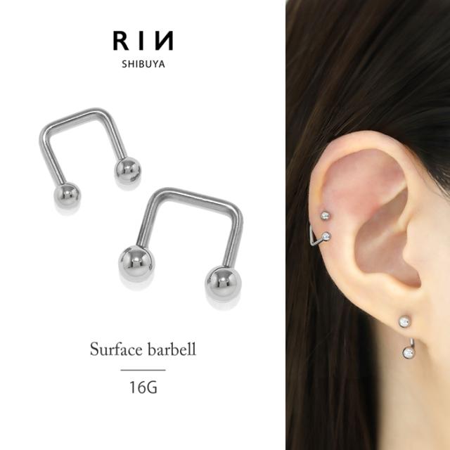 16G サーフェイスバーベル コの字型バーベル シルバー ステンレス 【片耳用】 軟骨1291 t951-61