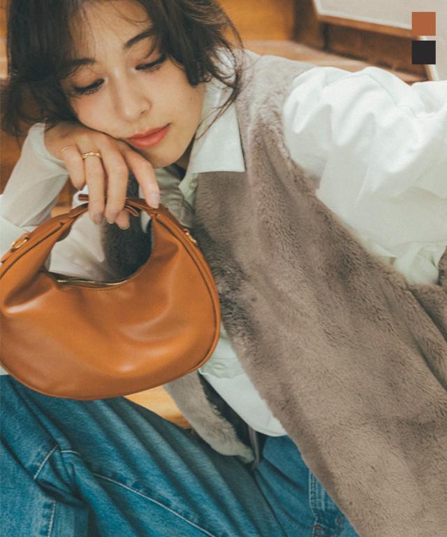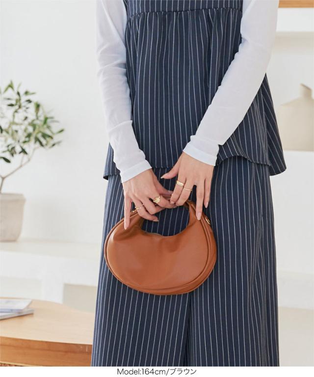 コンパクトなサイズ感と持ち手のひねり金具が魅力的なハーフムーンバッグ。同素材の取り外し可能な丸紐ショルダーストラップ付きで、コーディネートに合わせてアレンジしてご着用いただけます。ひねり金具を外して持ち手部分を開くとファスナーの開閉、出し入れが簡単◎。【素材・サイズ感】しっとりマットな質感や、ひねり金具に丸紐ストラップなど、ミニサイズながら遊び心たっぷりなアイテムです。持ち手の金具が印象的ながら、ストラップが丸紐なので取り付けると柔らかい雰囲気にも◎。ブラウンとブラックのベーシックな2色展開で様々なコーディネートに合わせていただけます。※キャンセル/変更不可※お届けまでの日程について