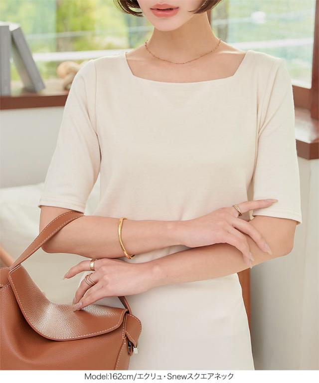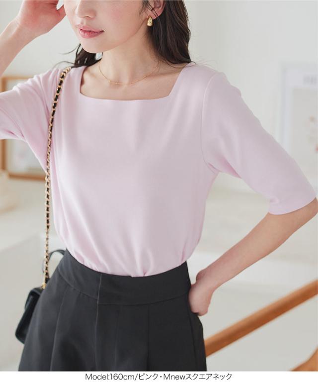 春新作 [S M Lサイズ][Bネック スクエアネック]半袖スムースベーシックカットソートップス C4684 入荷済 レディース カットソー トップス 半袖 5分袖 ボートネック シンプル