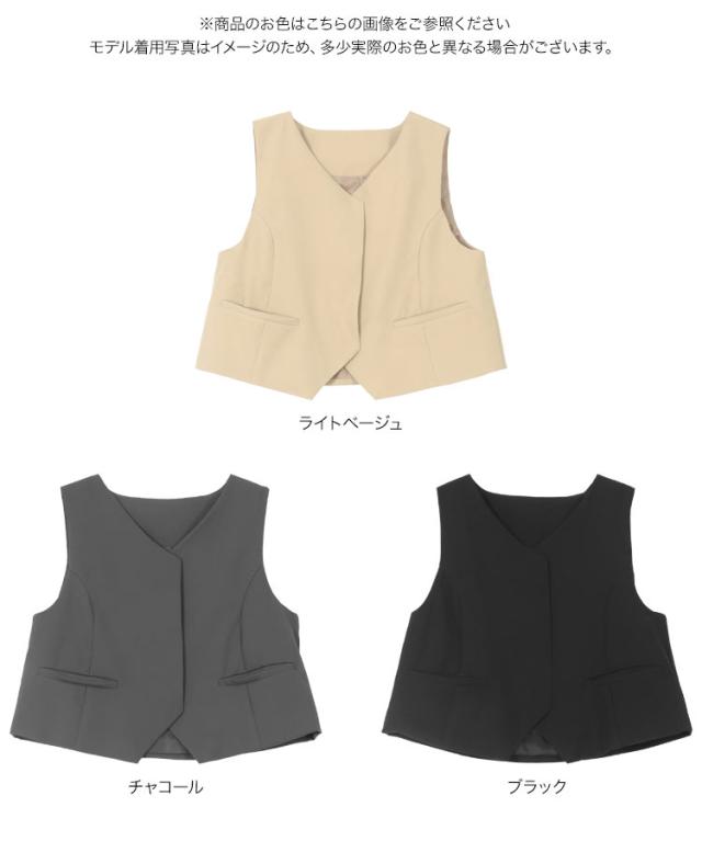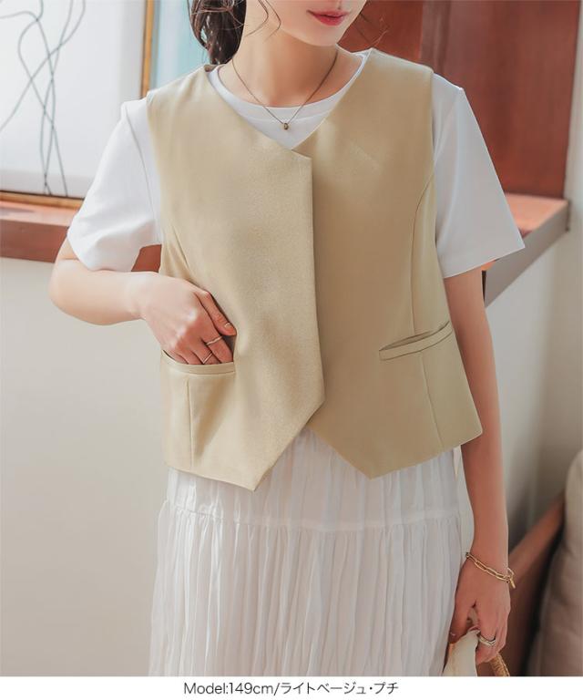 低身長さんにぴったりなスタイルアップ見えが叶うショートベスト。シンプルなTシャツやロンT、チュールスカートやティアードスカートなどのフェミニンなアイテムと相性抜群です。前を開けてインナーをのぞかせ、抜け感を出したスタイルもおすすめ◎デイリーユースはもちろん、オケージョンスタイルにもぴったりのアイテムです。【素材・サイズ感】コンパクトなショート丈ですが身幅やアームホールにゆとりを持たせているので、柔らかい印象のシルエットに見せてくれます。開けた時もバランスが取りやすいデザインとなっており、ボトムスは何でも合わせやすく、落ち着いた女性らしいコーデを楽しむことが出来ます。同生地のM4027とのセットアップ使いもオススメです。※キャンセル/変更不可※※お届けまでの日程について