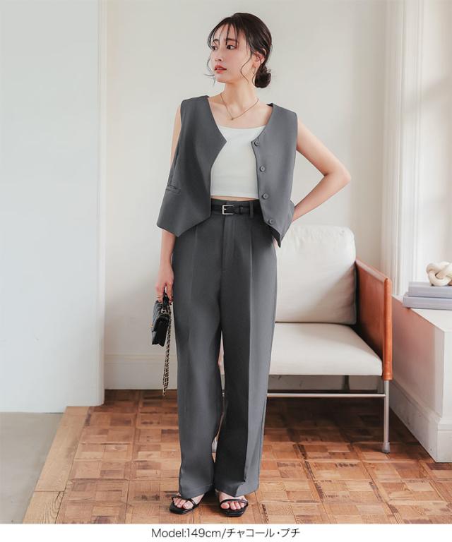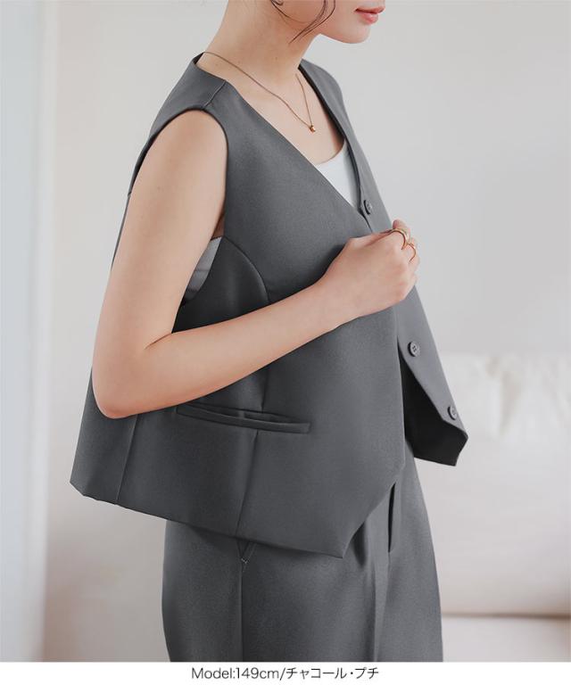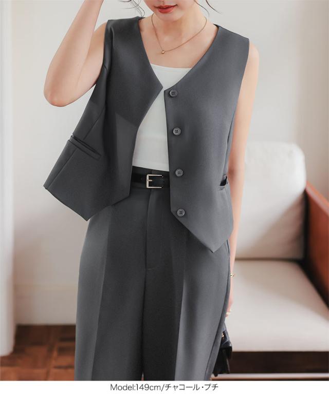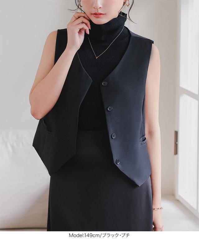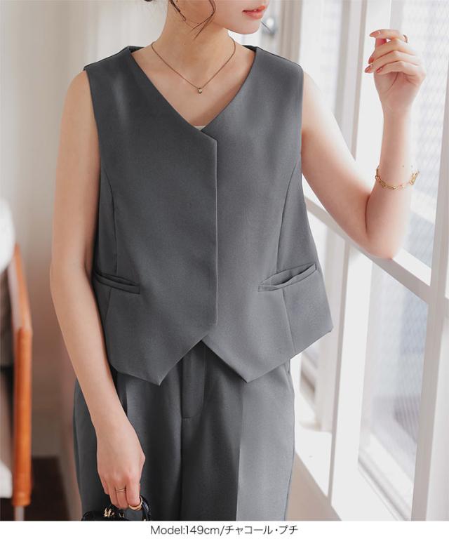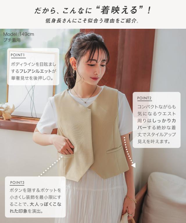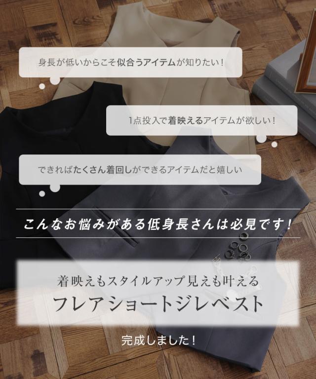 [ Petitle プチレ ] フレアショートジレベスト C7363 入荷済 レディース 20代 30代 40代 低身長サイズ 低身長さん向け 低身長 低身長さんサイズ 低身長さん向けサイズ 小柄 低身長コーデ サイズ プチサイズ チャコール グレ
