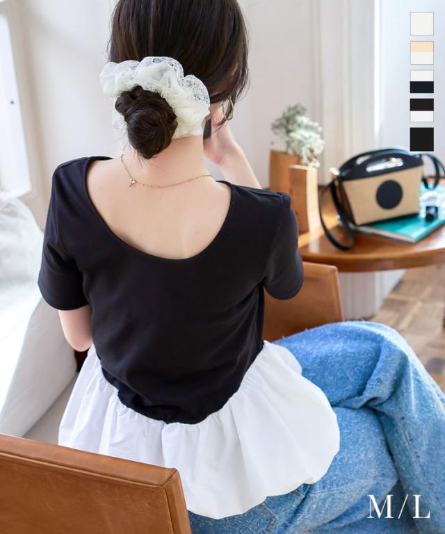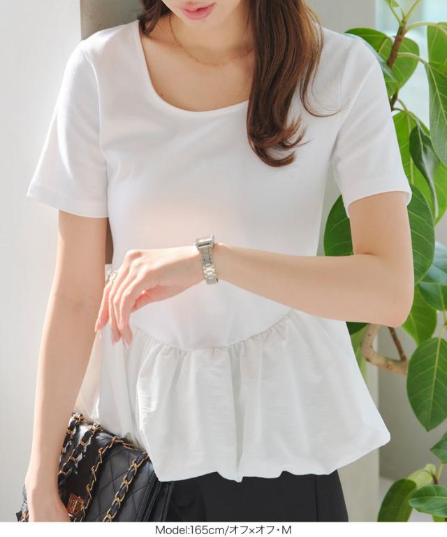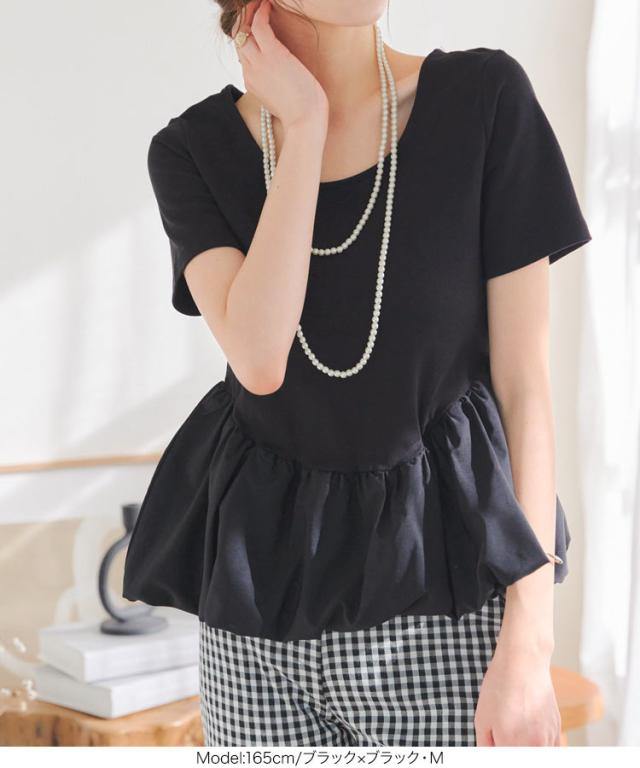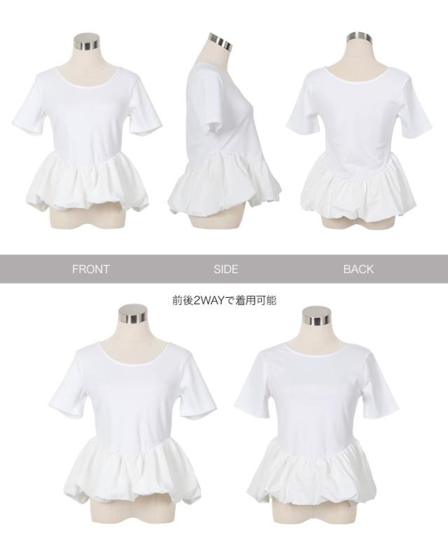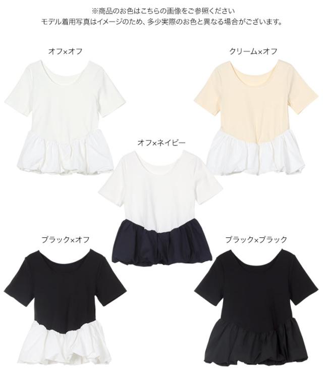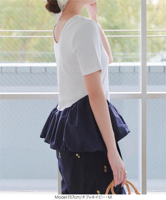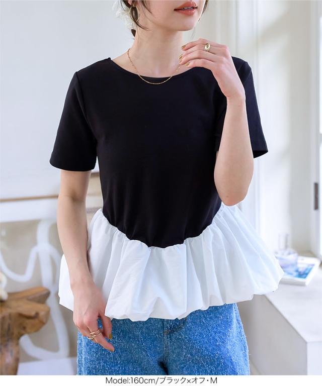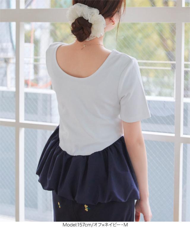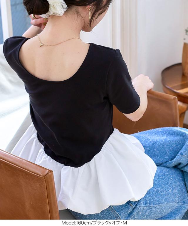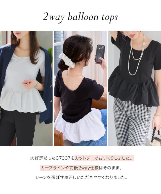 春新作 2wayバルーンペプラムドッキングトップス C7432 入荷済 レディース トップス バレエコア クルーネック 20代 30代 40代 ウエストマーク ペプラムトップス バルーントップス ボートネック 前後2way バイカラー 配色 デコルテ 長袖トッ
