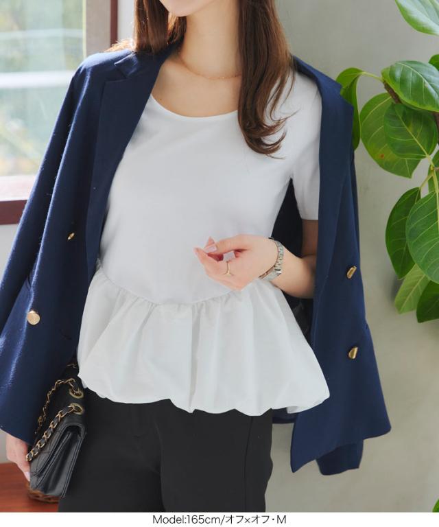 表情豊かな立体シルエットが華やかなフェミニントップス。トレンドのバルーンをドッキングしたペプラムフォルムが一枚で存在感あふれるスタイリングに。程よく開いたクルーネックが顔まわりにヘルシーな抜け感をプラス。前後2way仕様も魅力のひとつ。細身からワイドのボトム合わせとも相性よくコーデにアクセントをもたらせてくれる一着です◎【素材・サイズ感】カットソー素材とハリ感のある布帛素材のドッキングデザイン。メリハリのあるペプラムデザインでスタイルアップ見えもうれしい着映えトップスです。シーズンに合わせて使える長袖と半袖の2タイプ展開◎※キャンセル/変更不可※※お届けまでの日程について