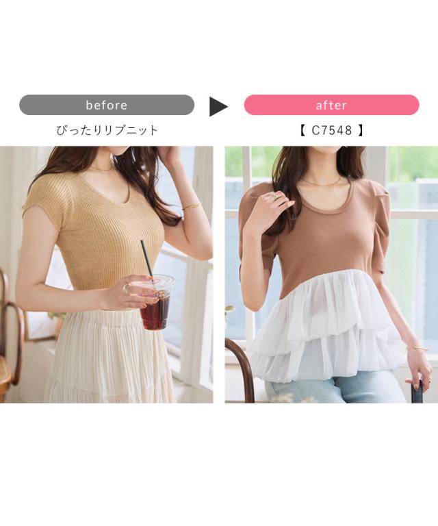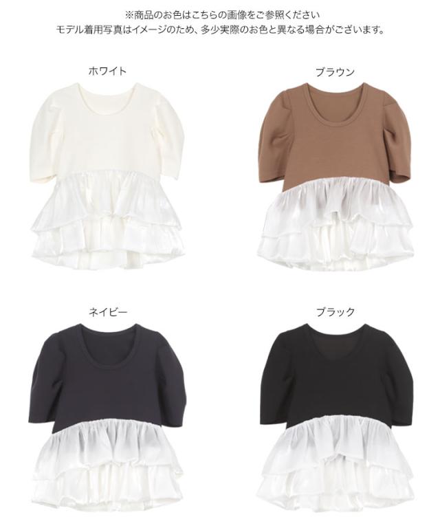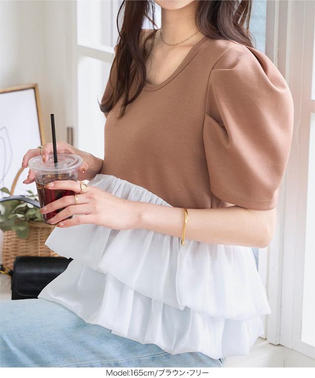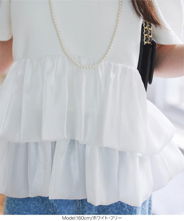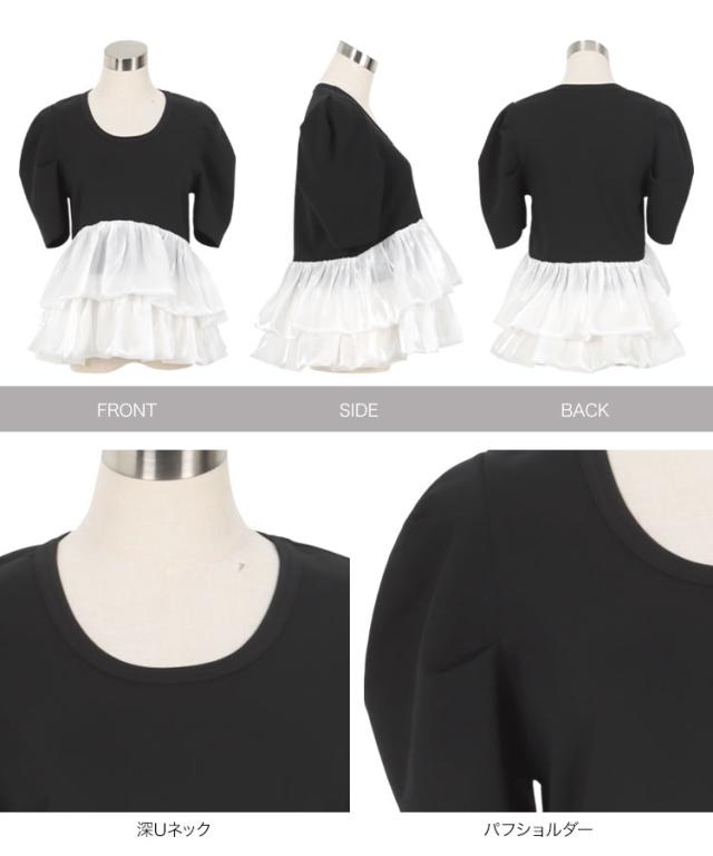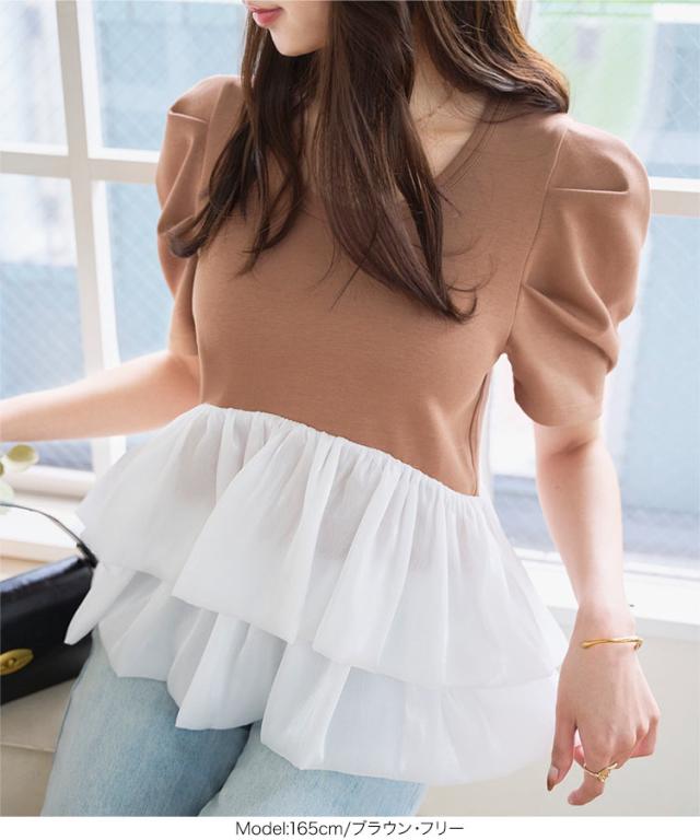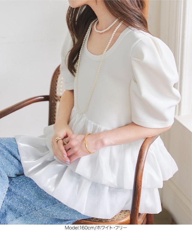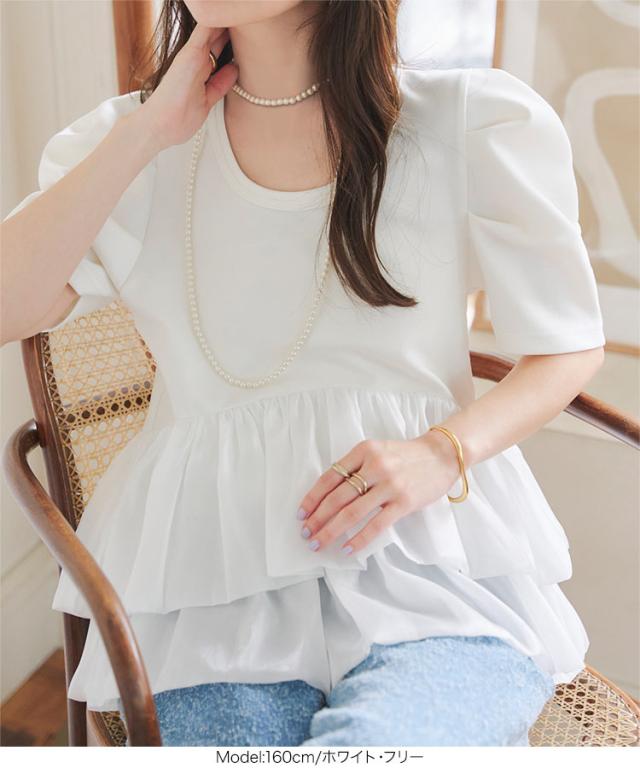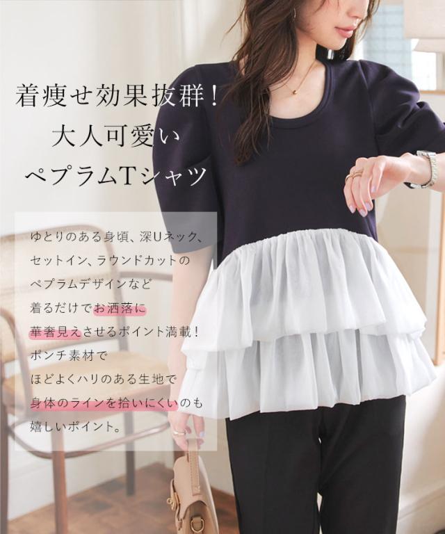 バルーンフリルパワショルポンチTシャツ C7548 入荷済 レディース 20代 30代 40代 トップス Tシャツ 半袖 ポンチ バルーン Uネック バルーントップス ペプラム ペプラムトップス ペプラムTシャツ バルーンTシャツ 深Uネック 深Uネッ
