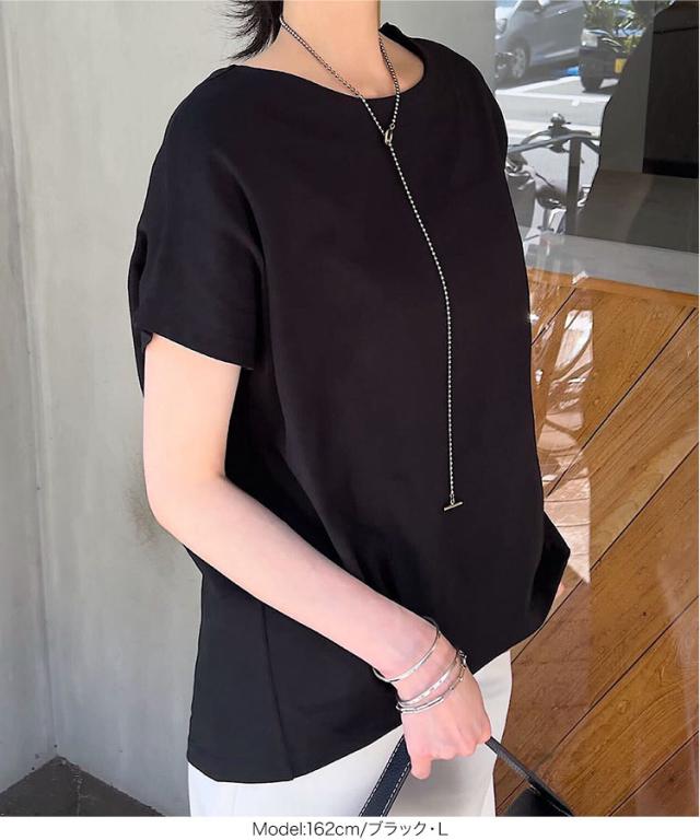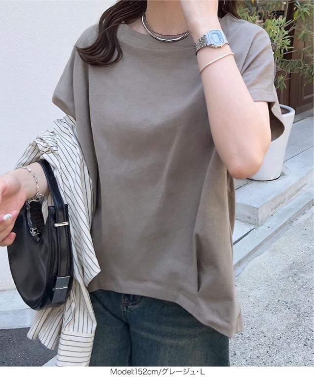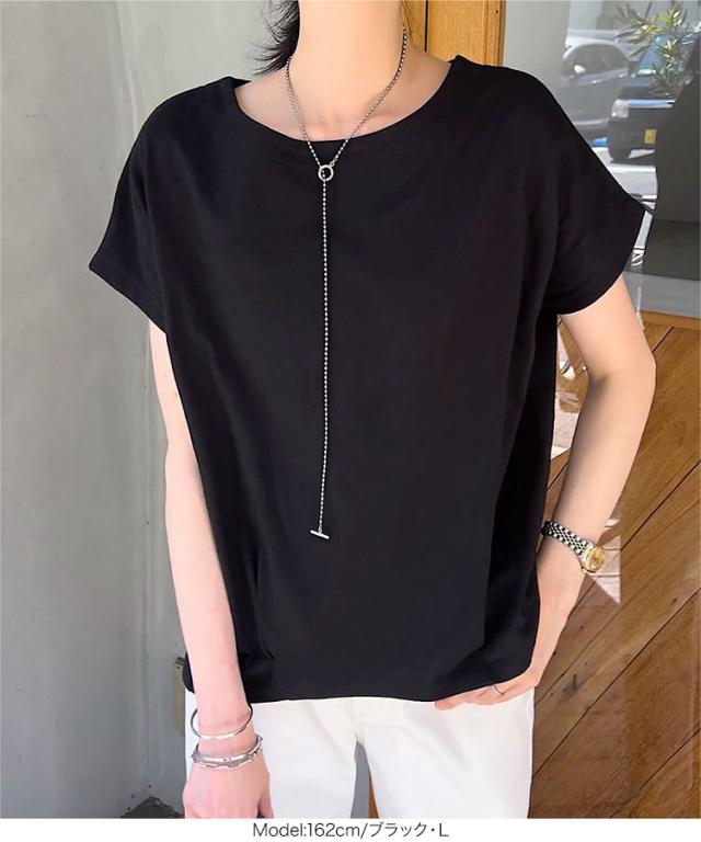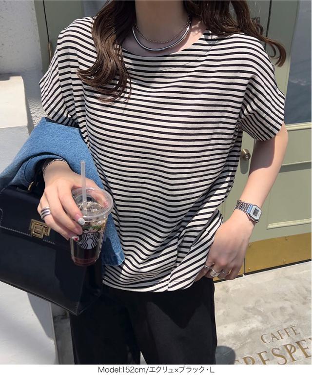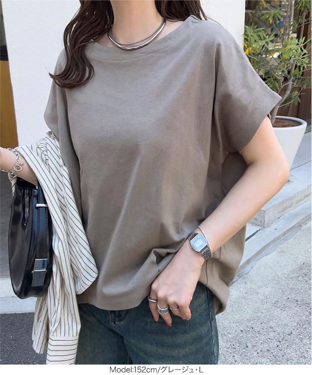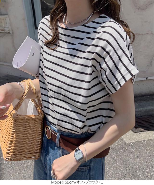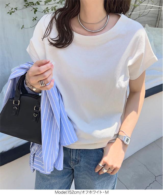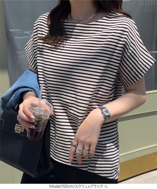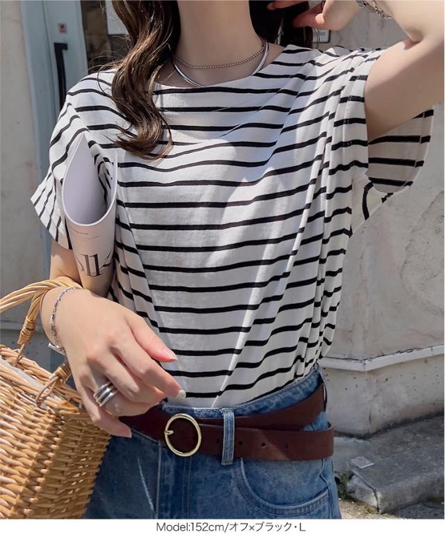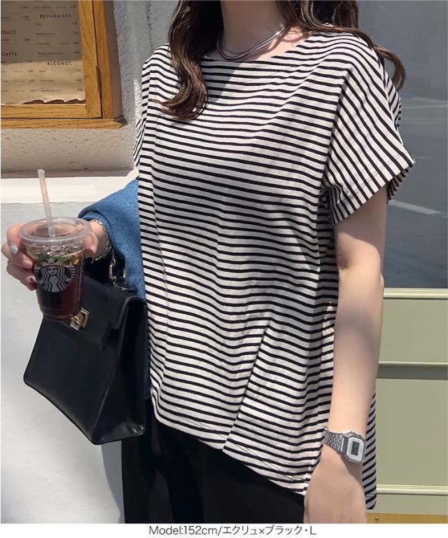 ボートネック半袖コットンTシャツ C7819 入荷済 ボートネック コットン 綿 Tシャツ ティーシャツ 夏トップス ボーダー タック チュニック L LL フレンチスリーブ 半袖 半袖Tシャツ