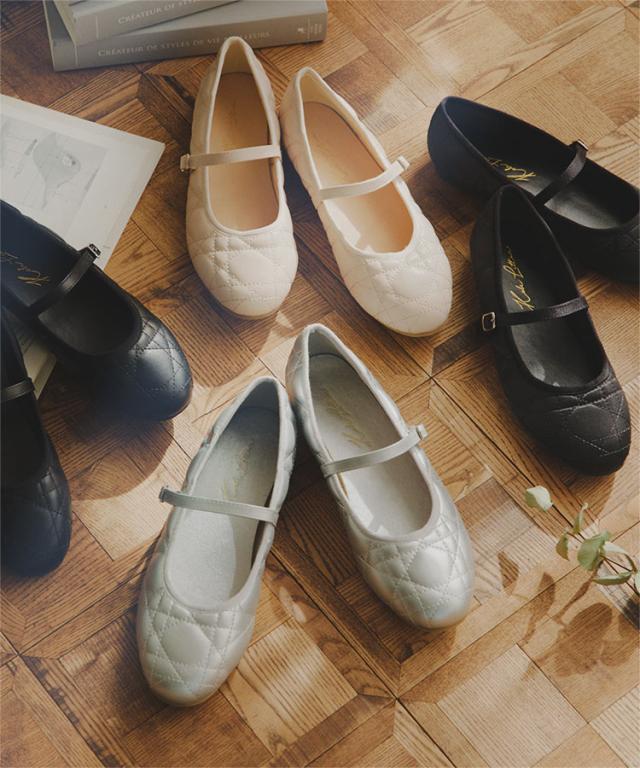 クラシカルな大人の上品さ引き立てるキルティングメリージェーン。丸みのあるフォルムが可愛らしくフェミニンなコーデからカジュアルスタイルにも幅広くマッチ。素足はもちろん、靴下、タイツ合わせのオシャレにも◎シーズン問わずお使いいただけます。【素材・サイズ感】S-LLの4サイズ展開。フラットソールで歩きやすく、クッション性のある柔らかなフォルムが快適な履き心地。サイズ調整可能なストラップ付きで動きやすくフィット感のある一足です。トレンドのサテン素材と雨や汚れなどにもお手入れしやすいスムース素材でのご用意です。※キャンセル/変更不可※※お届けまでの日程について