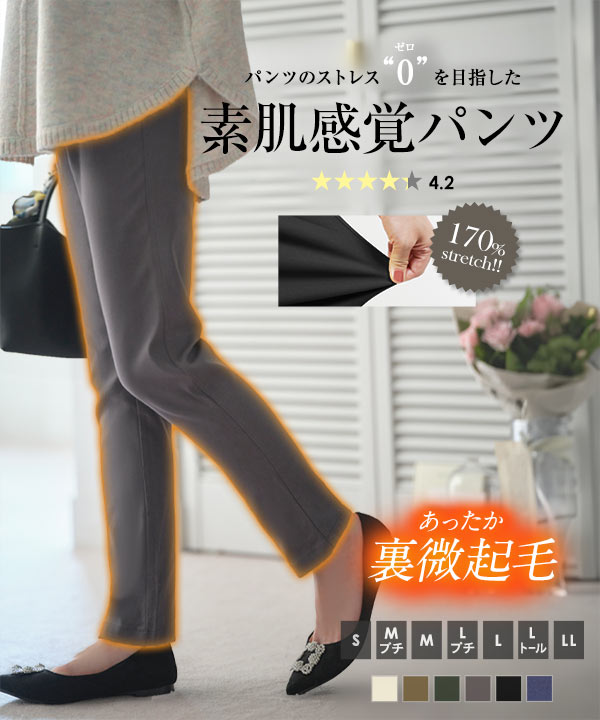 新作 裏起毛 ストレッチ パンツ [ 裏微起毛 ] レディース ウエスト紐 ウエストゴム ストレッチ スキニーパンツ M3798 入荷済 ウエストゴム 低身長 高身長 伸縮 股下長め ズボン 仕事 秋 冬 暖か ボトムス