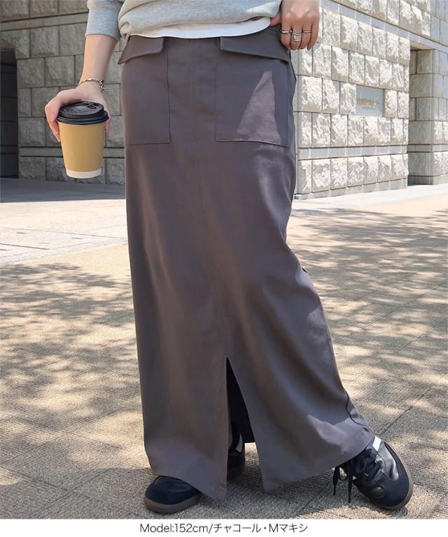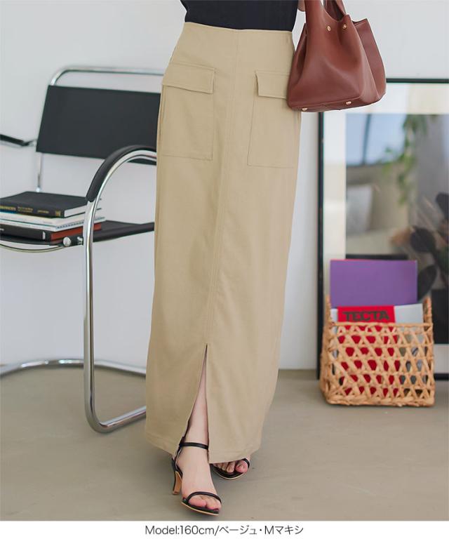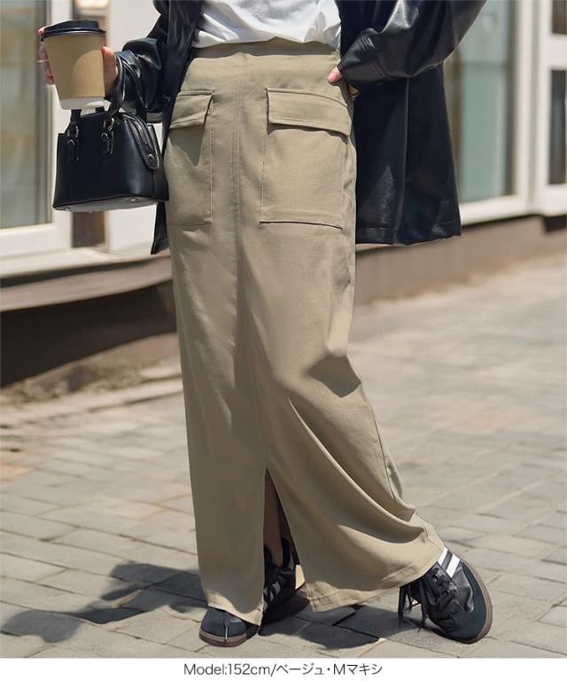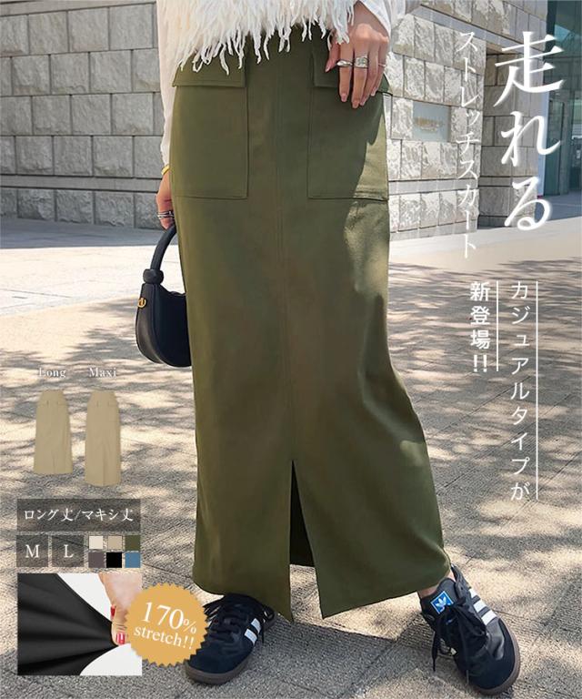 [ 選べるサイズ 丈 ] 走れるストレッチカーゴ風スカート M4077 入荷済 ベイカー ベイカースカート カーゴ カーゴスカート M2394 ボトムス スカート ロングスカート ナロースカート ロンスカ ロング丈