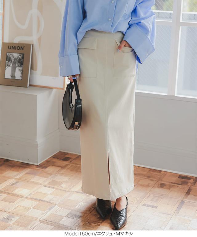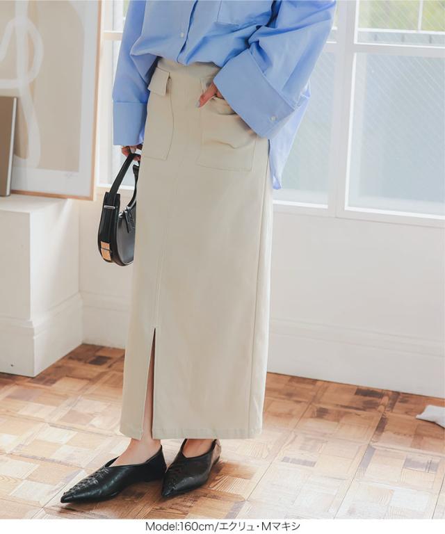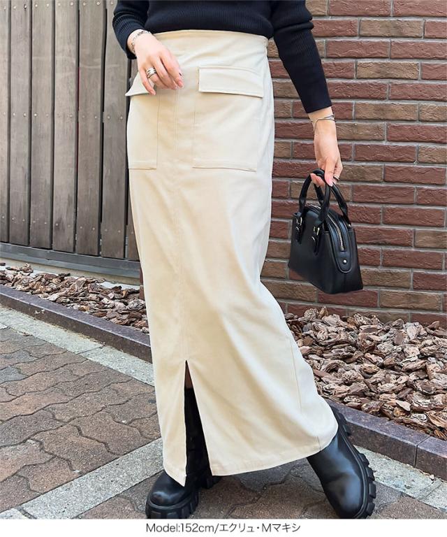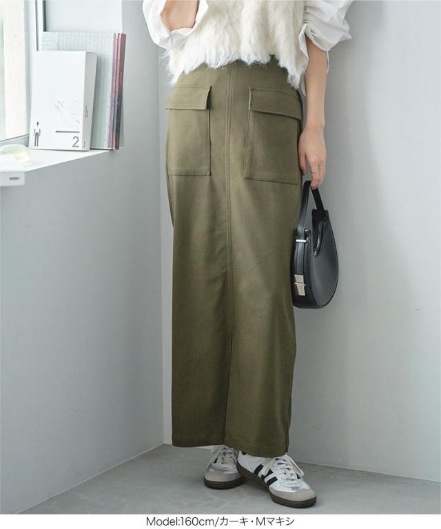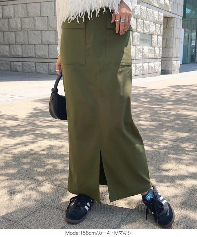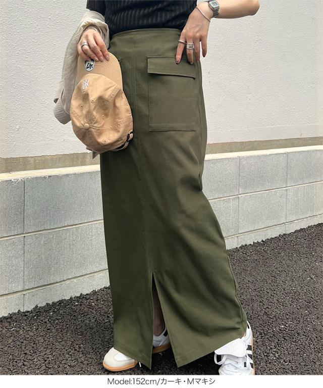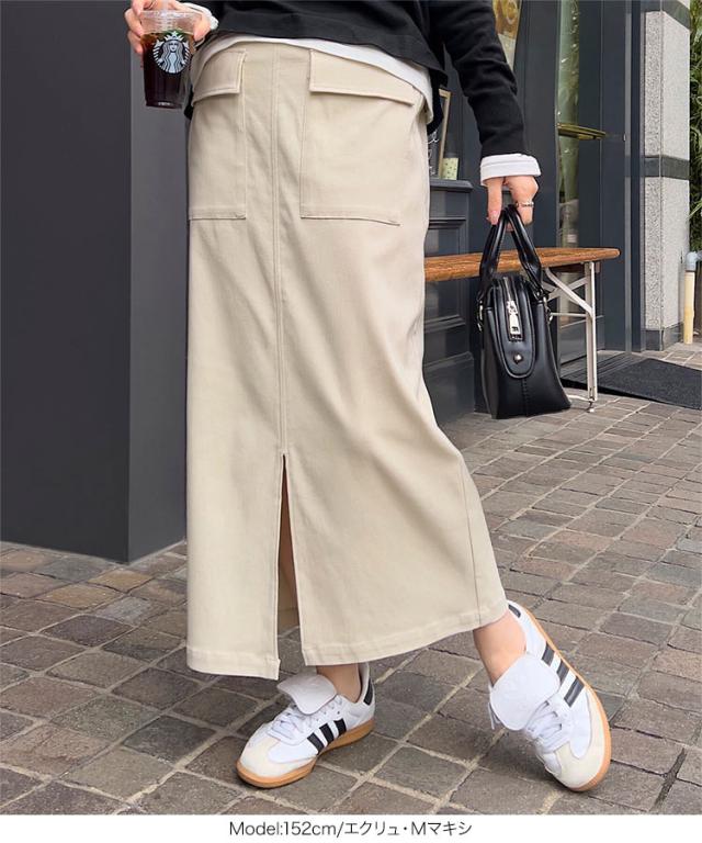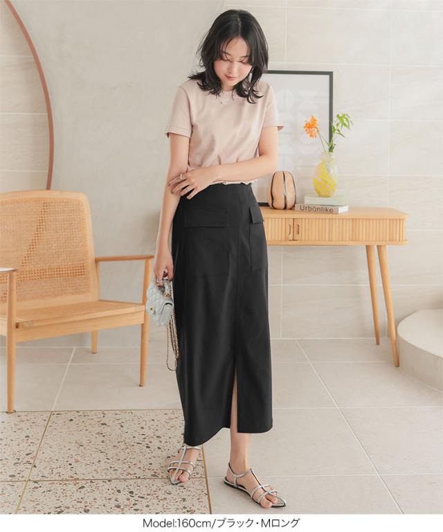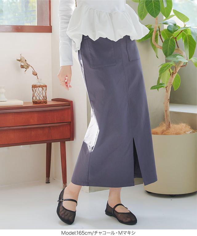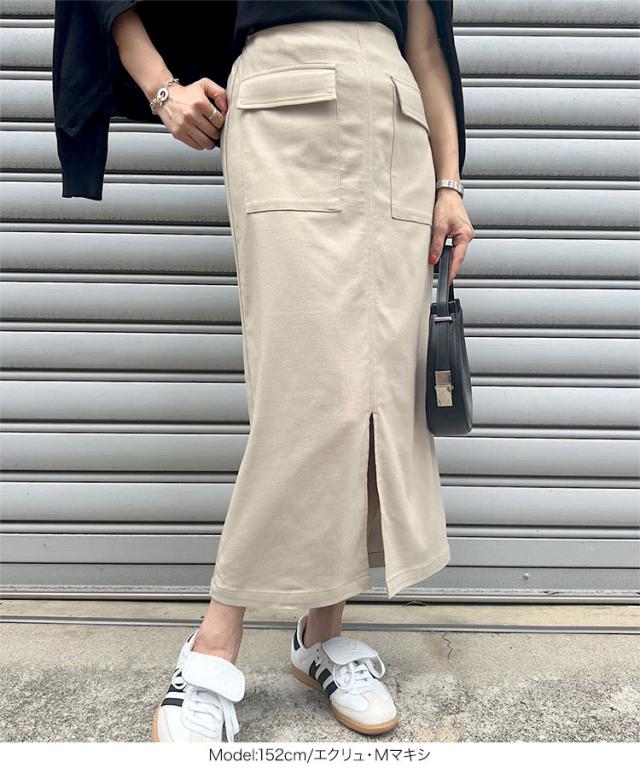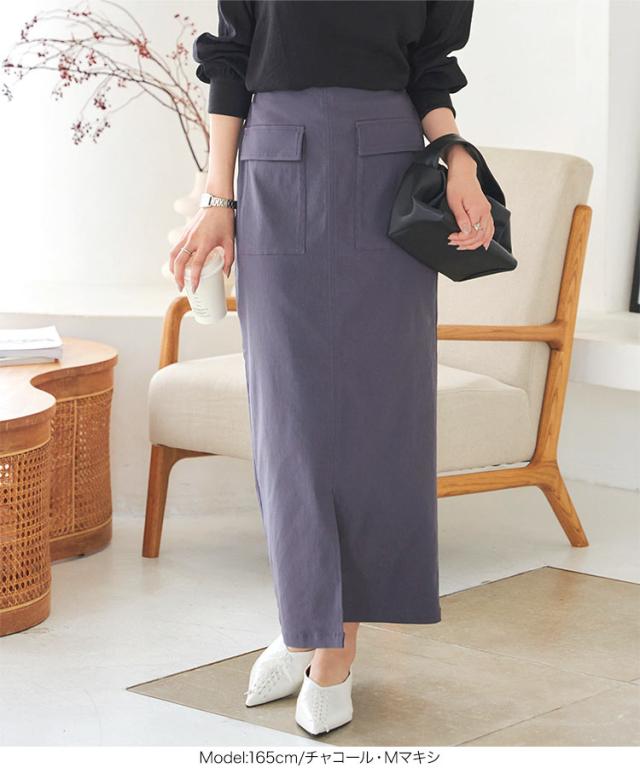 高評価ロングセラー商品【M2394】走れるストレッチタイトスカートに、カジュアルなカーゴ風デザインが新登場。人気のサイズ感やシルエットはそのままに、ポケットデザインを変更しました。パンツ派の方にもおすすめしたい、美ラインタイトスカートが登場。すとんと落ちるIラインで気になる身体の形を拾い過ぎない、万能スカートです◎【素材・サイズ感】M/Lサイズに加え、低身長さん〜高身長さんでも安心な選べる丈展開。ぐんぐん伸びるストレッチ素材でストレスフリーな着心地です。バックウエストがゴムなのですっきりとしたシルエットも魅力的。フロントスリットで足さばきも良く、脚のラインをスッキリ見せる事で着痩せ効果も発揮します。ポケットはリアルポケット◎※キャンセル/変更不可※※お届けまでの日程について