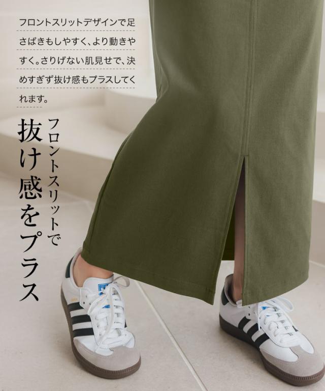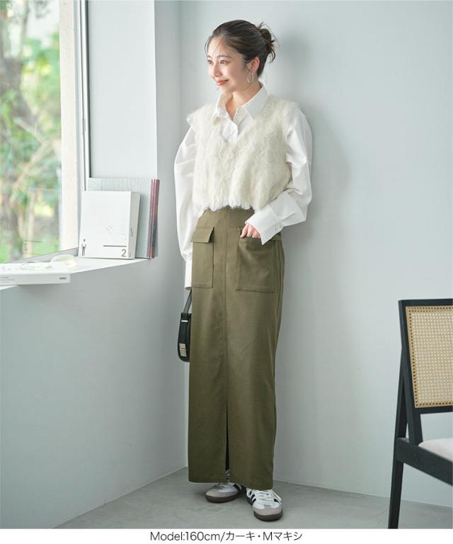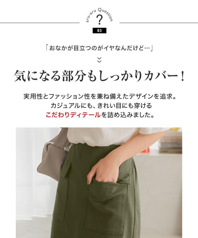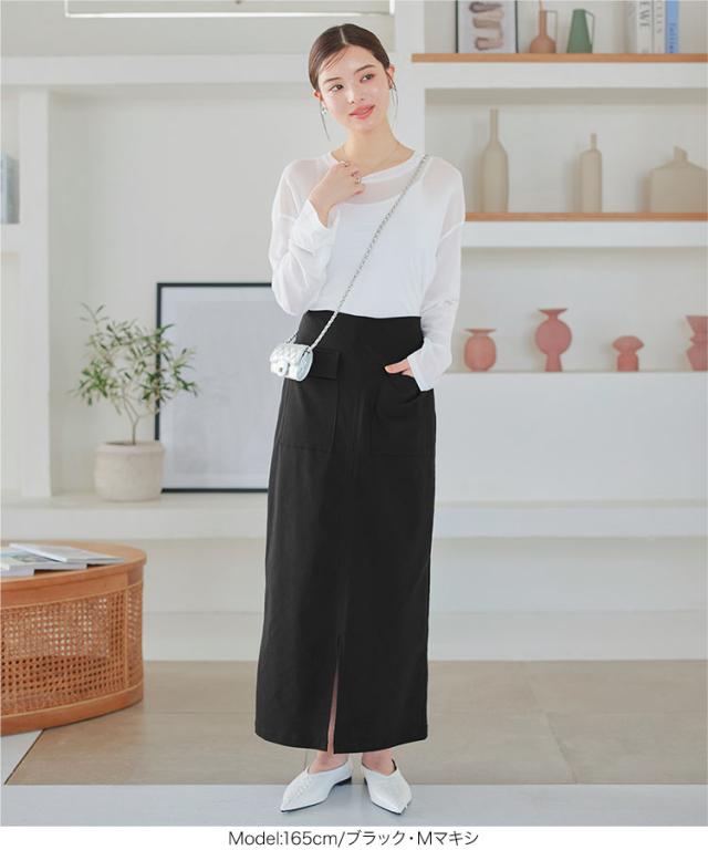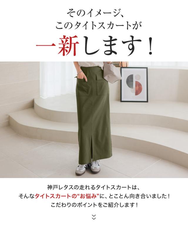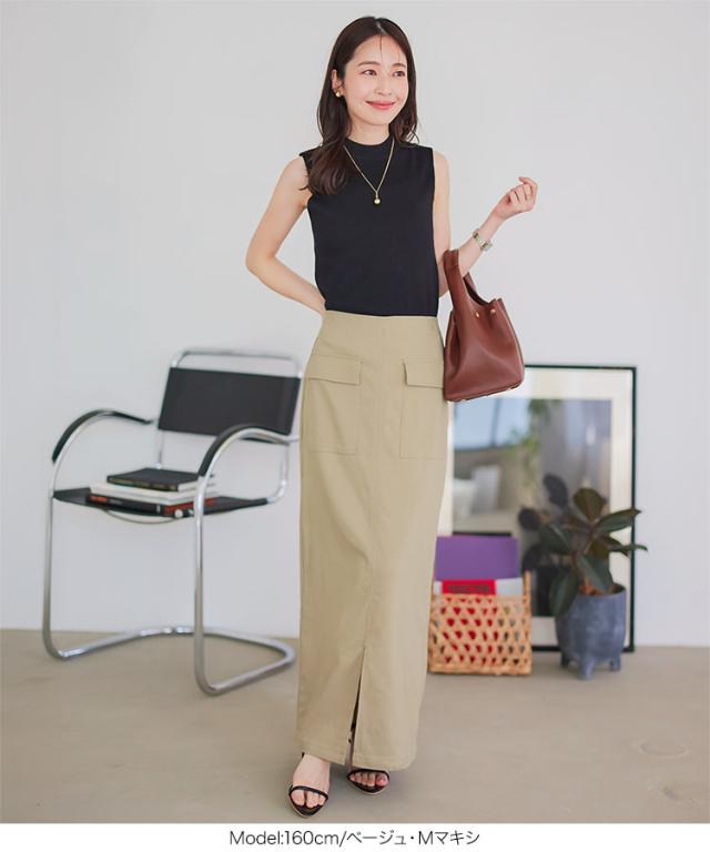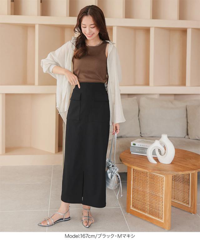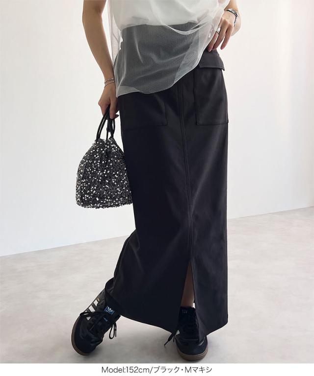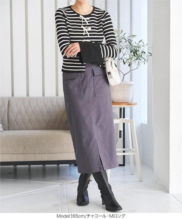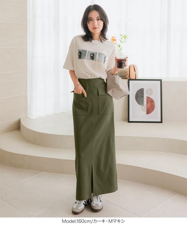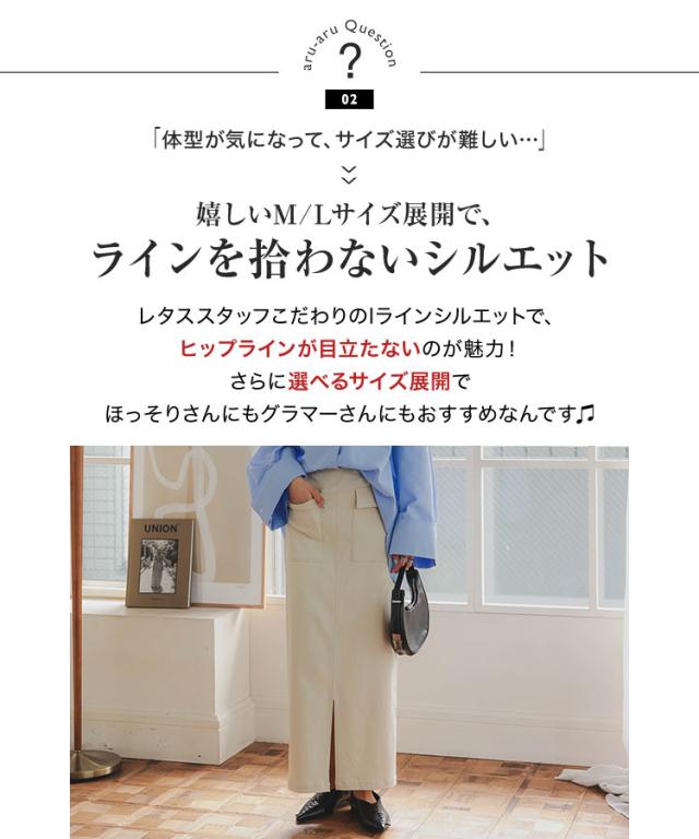 高評価ロングセラー商品【M2394】走れるストレッチタイトスカートに、カジュアルなカーゴ風デザインが新登場。人気のサイズ感やシルエットはそのままに、ポケットデザインを変更しました。パンツ派の方にもおすすめしたい、美ラインタイトスカートが登場。すとんと落ちるIラインで気になる身体の形を拾い過ぎない、万能スカートです◎【素材・サイズ感】M/Lサイズに加え、低身長さん〜高身長さんでも安心な選べる丈展開。ぐんぐん伸びるストレッチ素材でストレスフリーな着心地です。バックウエストがゴムなのですっきりとしたシルエットも魅力的。フロントスリットで足さばきも良く、脚のラインをスッキリ見せる事で着痩せ効果も発揮します。ポケットはリアルポケット◎※キャンセル/変更不可※※お届けまでの日程について