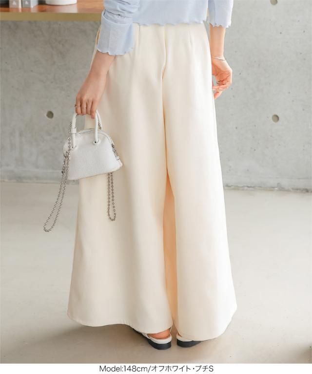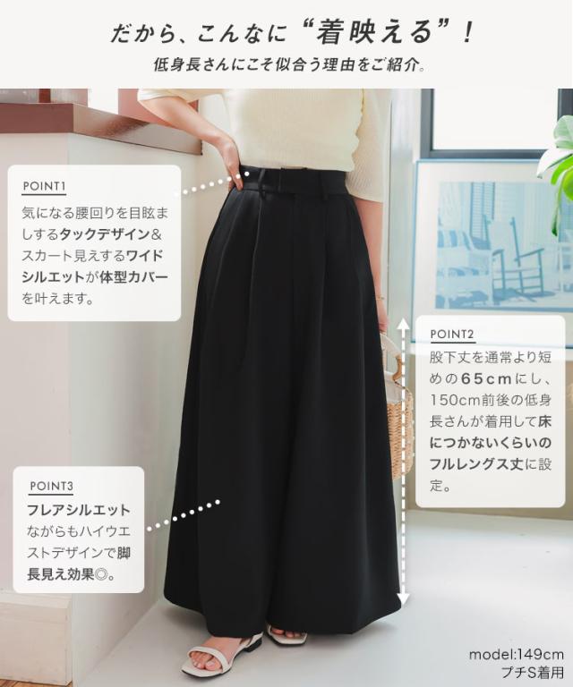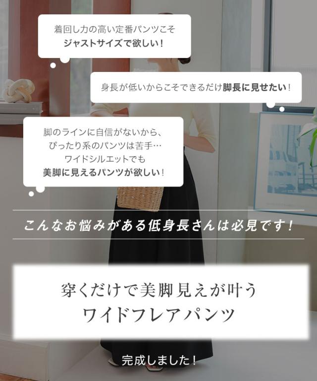 [ Petitle プチレ ] ワイドフレアパンツ M4158 入荷済 レディース 20代 30代 40代 低身長 低身長サイズ 低身長さん向け 小柄 低身長コーデ セミワイド サイズ ファスナー ポケット プチサイズ 低身長さんサイズ オフ オフ