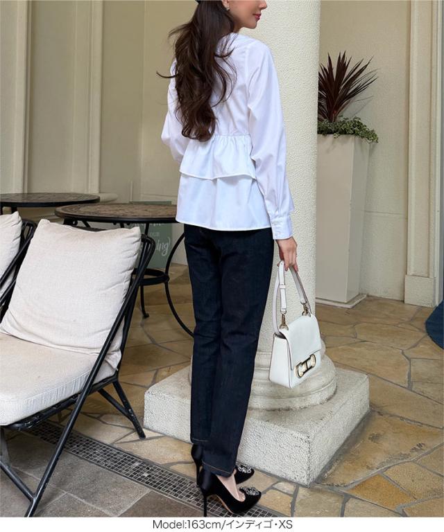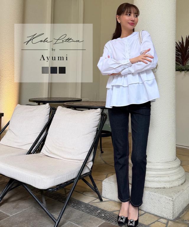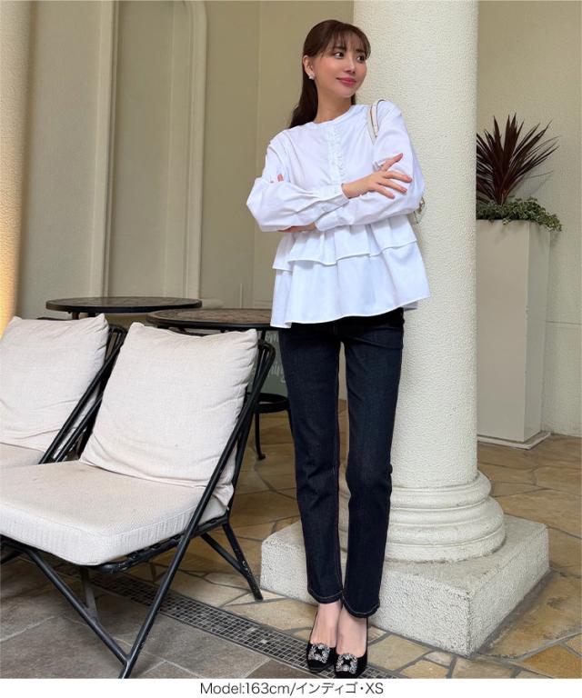 春新作 [ 岡部あゆみさんコラボ ]スリムストレートデニム M4245 入荷済 レディース 20代 30代 40代 きれいめ Gパン ジーパン おかべ レタスオリジナルサイズ オカベ Ayumi 美脚 脚長 着痩せ 体型カバー ブラック インディゴ