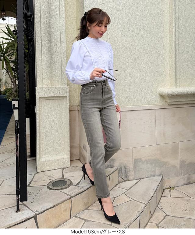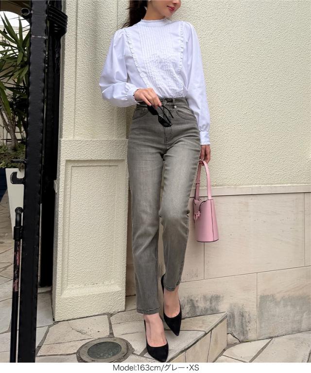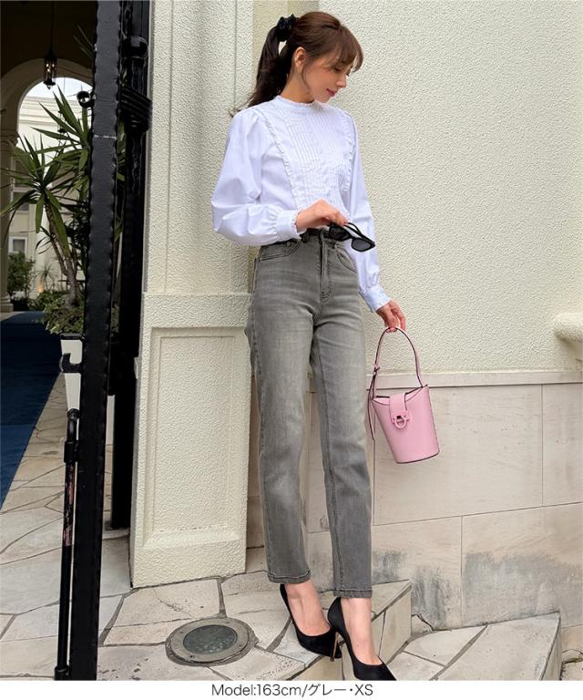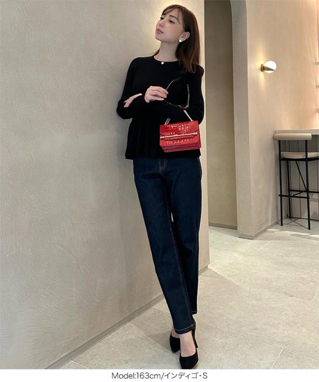 大人気インフルエンサー【岡部あゆみさんコラボ】スリムストレートデニム。太すぎず細すぎない絶妙なラインで、脚をすっきり長く見せてくれます。ハイウエスト仕様で腰まわりをしっかりホールドしつつ、スタイルアップ効果も抜群。シンプルなのに大人の抜け感を感じさせる、長く愛用できるデニムです。【素材・サイズ感】脚のラインを拾いすぎないスリムストレートで、すっきりと上品な印象に。安心感のあるハイライズ仕様で、トップスをインしたスタイルも美しく決まります。膝下はまっすぐ落ちるシルエットで、自然な美脚効果を演出。どんなトップスとも合わせやすく、ワードローブに加えておきたい頼れる一本です。※キャンセル/変更不可※※お届けまでの日程について