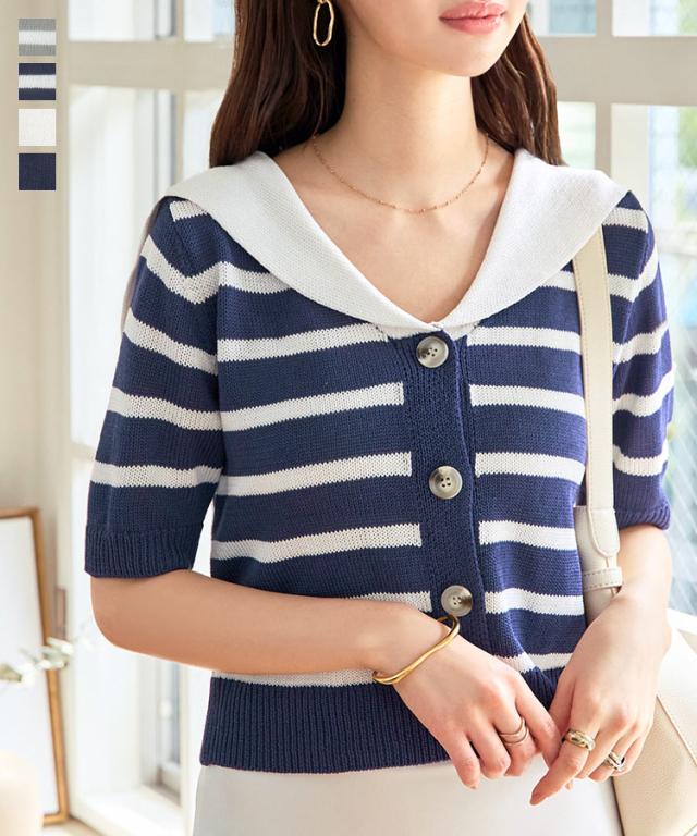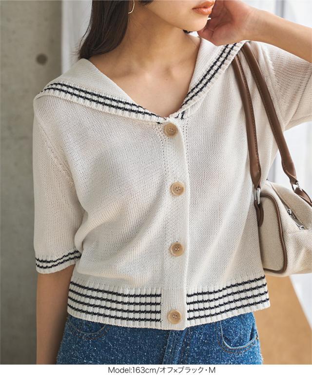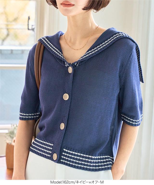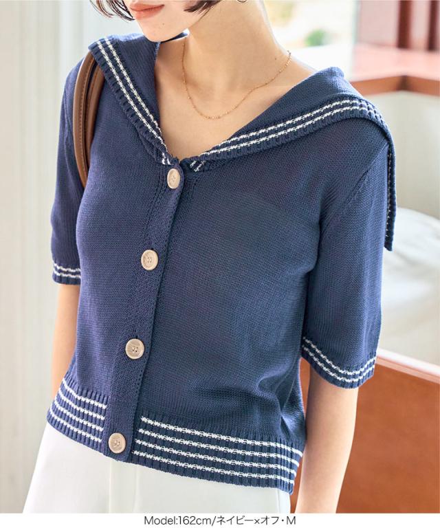 セーラーカラーショートスリーブニットカーディガン N1181 入荷済 レディース 20代 30代 40代 セーラー襟 春夏 服装 ニットトップス 半袖ニット ニットカーディガン ショートスリーブ プルオーバー ビッグ襟 衿 セーラーカラー ビッグカラ