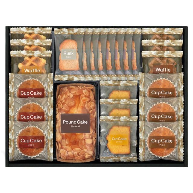 【商品名】 ベイクドスイーツセレクション 【内容】カップケーキ プレーン・メープル ・ワッフル プレーン・チョコ ・シュガーラスク×各1 【賞味期限】常温6ヶ月 (表示期限の半分以上) 【アレルゲン】卵・乳・小麦卵・乳・小麦