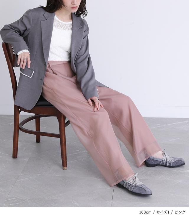 23日最大1200円クーポン 『オーガンジーレイヤードストレートパンツ』【メール便不可】【20】[パンツ レディース ボトムス ロング丈 ストレート オーガンジー レイヤードパンツ シアー 春 夏 秋 冬]