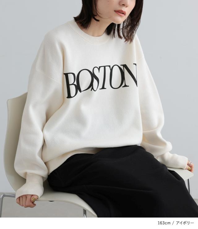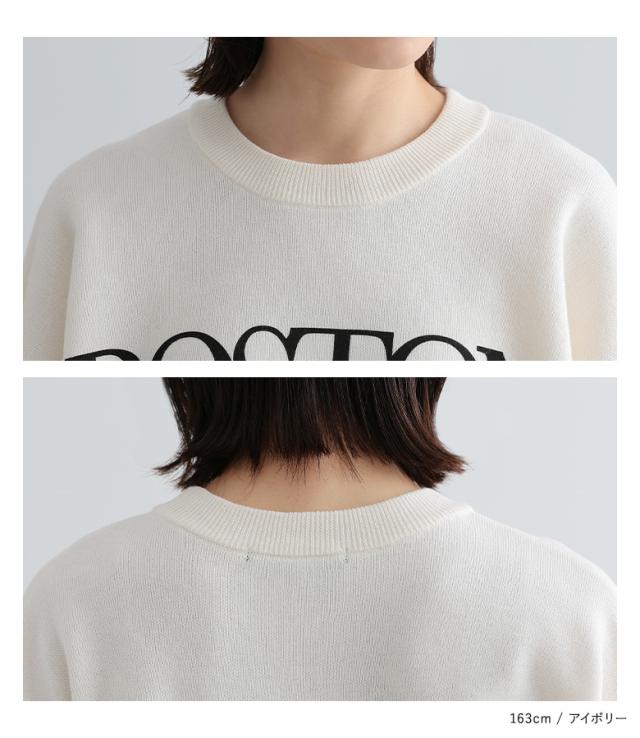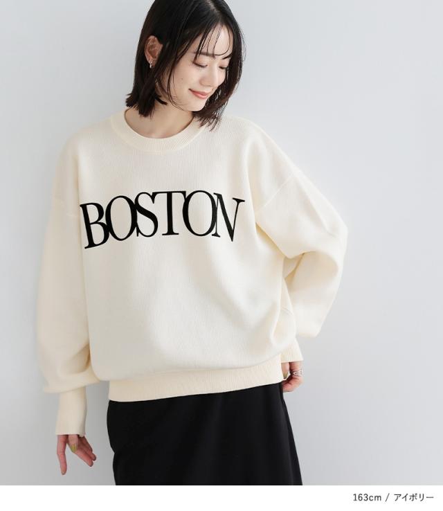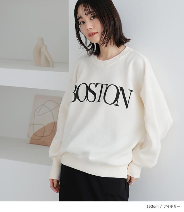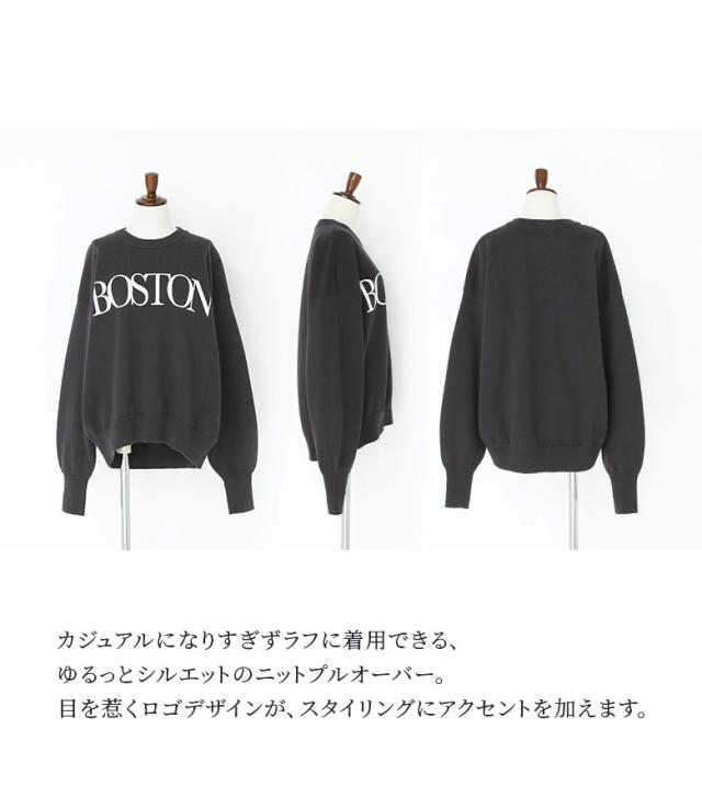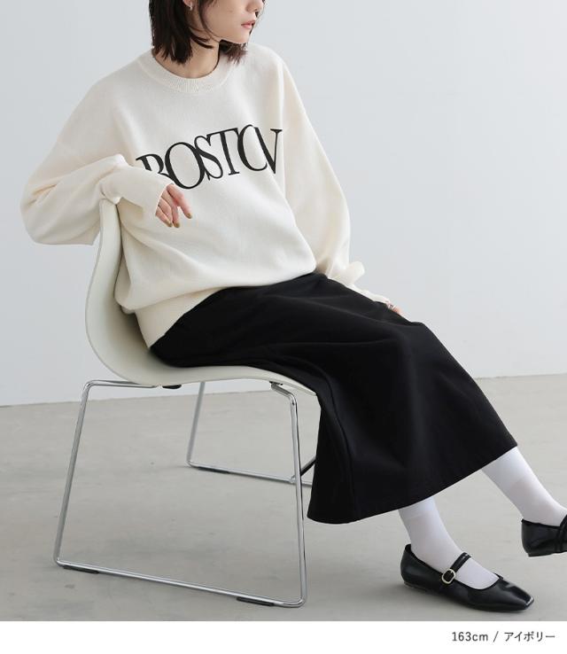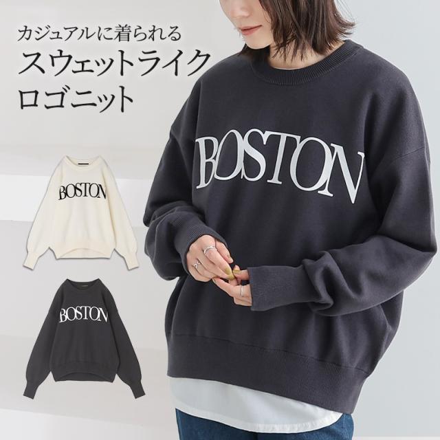 『スウェットライクロゴニットプルオーバー』【メール便不可】【30】[スウェット レディース ニット プルオーバー 長袖 ロゴ 長袖ニット ニットプルオーバー ハイゲージ カレッジロゴ リブ オシャレウォーカー]