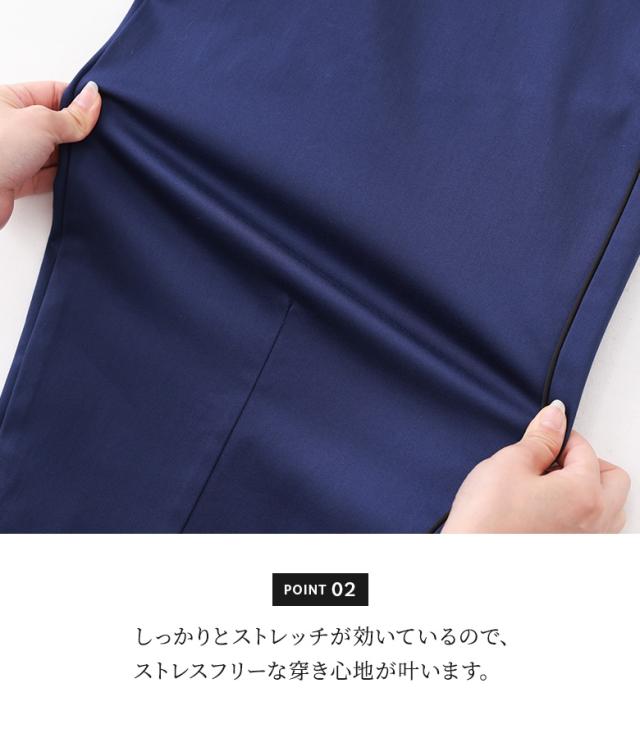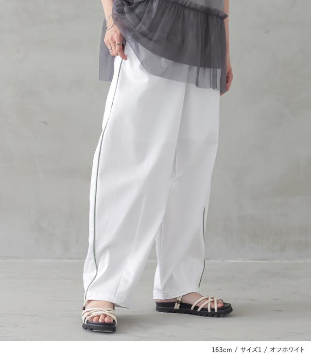 『サイドライン入り接触冷感カーブパンツ』【メール便不可】【30】[カーブパンツ ロング レディース ボトムス ワイドパンツ 接触冷感 ストレッチ サイドライン 配色 ウエストゴム 春 夏]