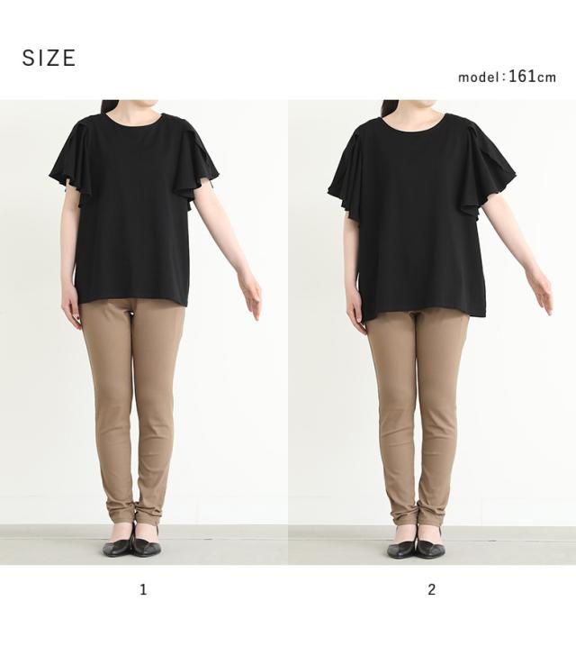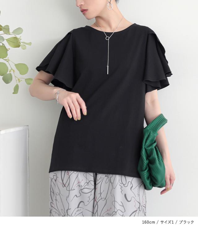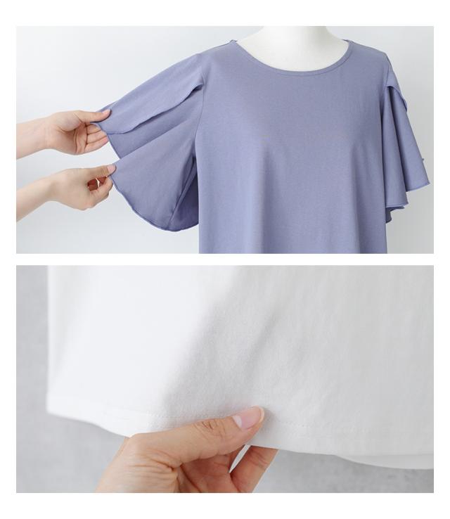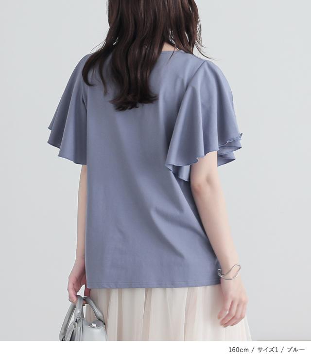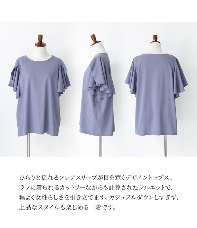 『袖フレアカットソー』※メール便可※【10】[カットソー Tシャツ 半袖 トップス フレアスリーブ コットン混 綿混 二の腕カバー 着回し クルーネック カジュアル きれいめ 上品 春 夏]
