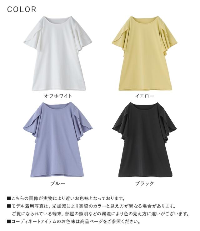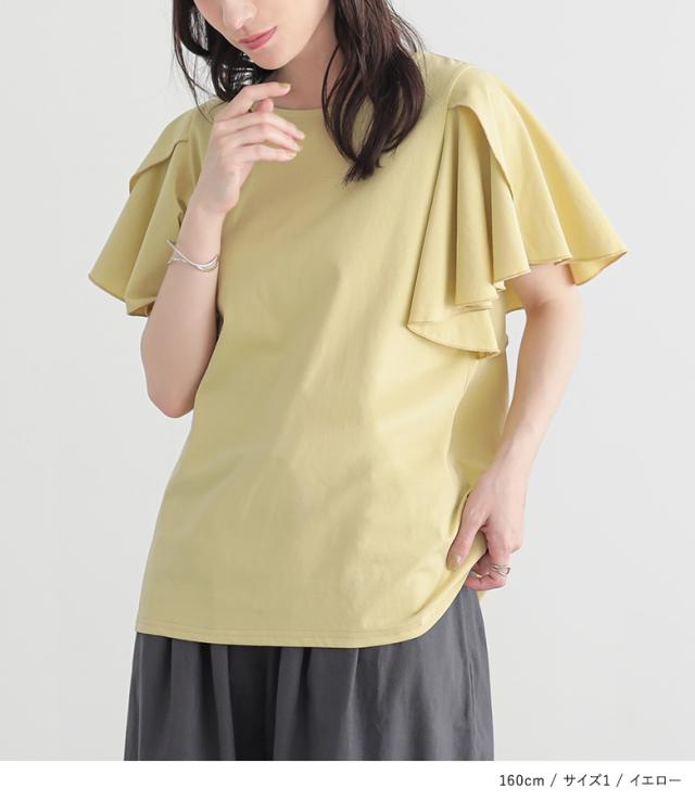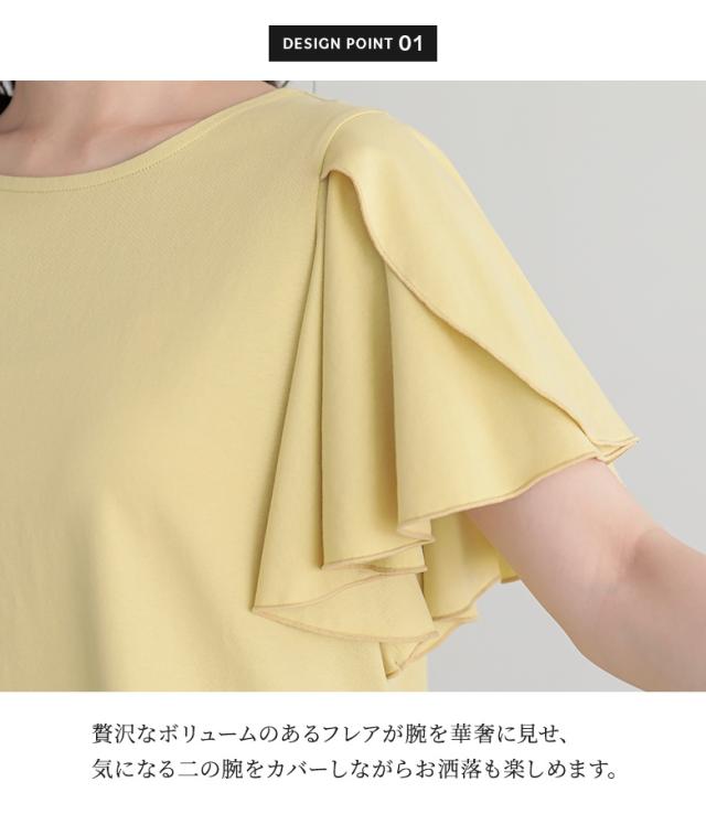 カットソー Tシャツ 半袖 トップス フレアスリーブ コットン混 綿混 二の腕カバー 着回し クルーネック カジュアル きれいめ 上品 春 夏 レディース 【TP】 プルオーバー n'OrLABEL ノア—ルレーベル 大人女子 大人可愛い お洒落可愛い 大人カジュアル ベーシック ニュアンス ラフ エフォートレス オフィスカジュアル ナチュラル ホワイト 白 オフホワイト 袖コンシャス ミディ丈 ミドル丈 フリル 無地 おうちで洗える シンプル キレカジ フェミニン ガーリー 可愛い系 ゆったり ゆる 楽ちん Sサイズ Mサイズ Lサイズ LLサイズ 3Lサイズ XLサイズ ぽっちゃり 体型カバー 大きいサイズ プラスサイズ 10代 20代 30代 40代 50代 60代 女子会 通勤 通学 お買い物 お出掛け 旅行 リゾート おしゃれ お洒落 トレンド 流行 ママ 母 母親 osharewalker オシャレウォーカー おしゃれうぉーかー イエロー 黄色 ブルー 青 ブラック 黒[ID]12tn0zh