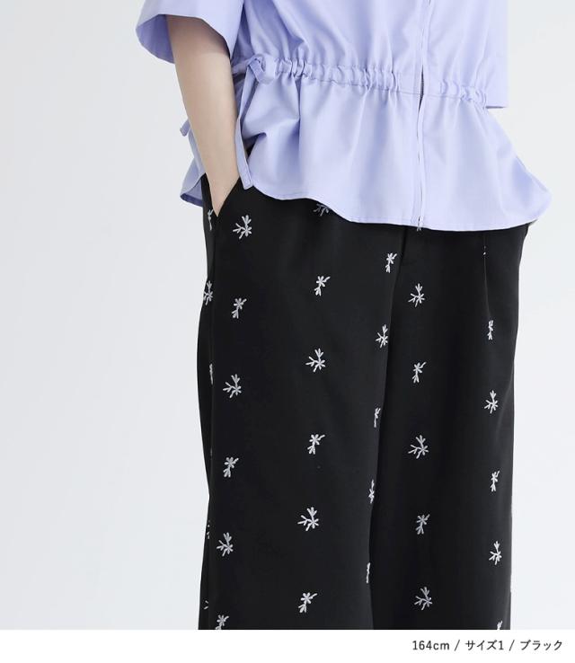『花柄刺繍スラックス』※メール便可※【10】[パンツ レディース ボトムス スラックス ワイドパンツ 長ズボン 花柄 刺繍 体型カバー 春 夏 秋 冬 オールシーズン]