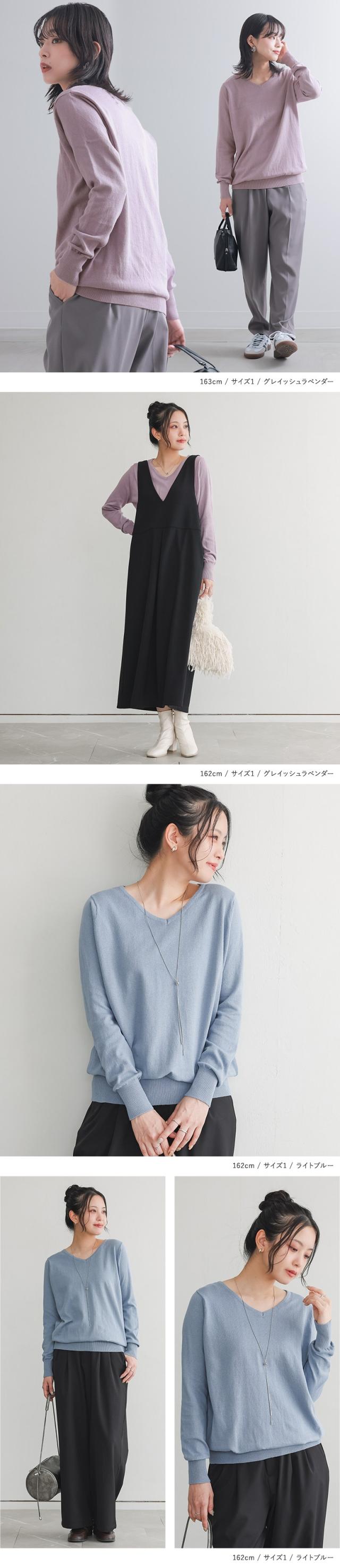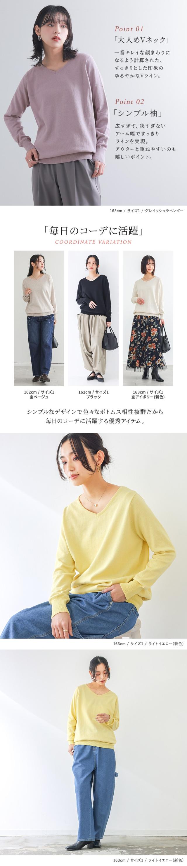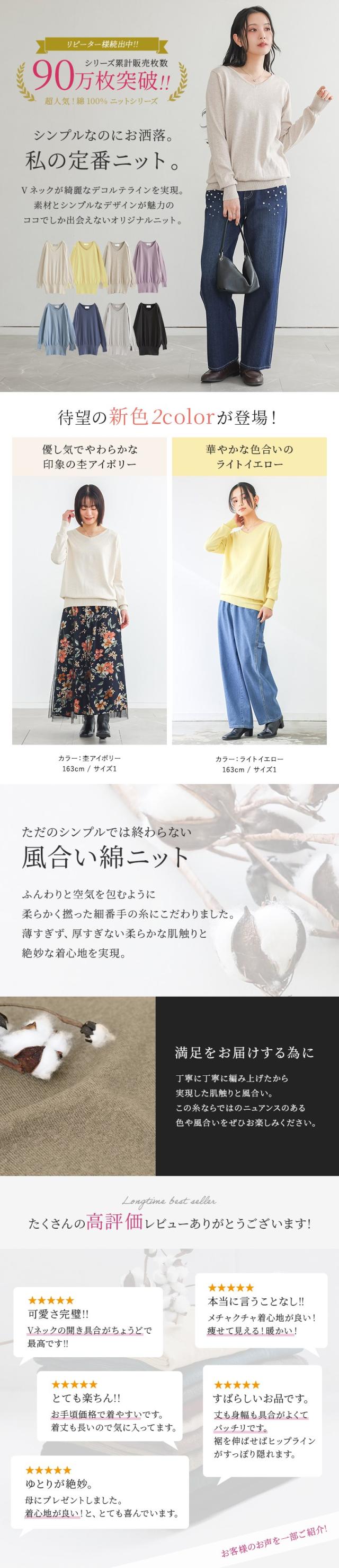 【新色登場】ニット セーター レディース トップス 綿100% コットン 長袖 Vネック 春 秋 冬 無地 体型カバー 通勤 オフィス シンプル 細見え ゆったり 綿ニット オシャレウォーカー ※メール便可※【10】