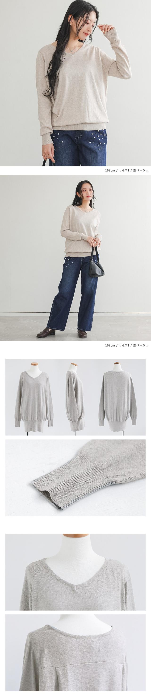 綿 ニット レディース ニットトップス セーター ショート丈ニット Vネック 長袖 タック 無地 綿100% コットン100% おうちで洗える あったか 秋冬春 オフィス カジュアル お出掛け 大人女子 大人可愛い きれいめ シンプル Sサイズ Mサイズ Lサイズ LLサイズ 3Lサイズ XLサイズ n'Or ノア—ル 綿ニットシリーズ ベージュ 杢ベージュ グレイッシュラベンダー 紫 パープル ライトブルー ブルー 青 紺 ネイビー グレイッシュネイビー グレー 灰色 杢グレー ブラック 黒 カラバリ ぽっちゃり 体型カバー 大きいサイズ n'OrLABEL ノアールレーベル cmrecommend designknit イエロー 黄色 アイボリー ホワイト 白[ID]321-1203[n'OrLABELゆるやかVネックシンプルニット]